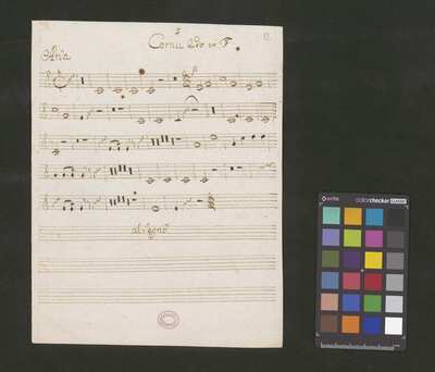 [pl-text: Na pierwszej stronie okładki zapisany pomarańczową kredką duży numer "N. 6".], [pl-text: Partie instrumentów dętych zapisane na kartach o wymiarach 21 x 18 cm.], [pl-text: Foliacja w źródle naniesiona ołówkiem.], [pl-text: Na końcu partii S solo rozpisana kadencja.], [pl-text: Pieczęć okrągła o treści "ARCHIWUM I BIBLIOTEKA | Krakowskiej Kapituły Katedralnej | Kk.I. | 587" na 2r.], [pl-text: Mała, czerwona, owalna pieczęć o treści "CATH. CRAC. * ARCH. CAPIT." na 1v oraz na stronach recto kart 3-13.]