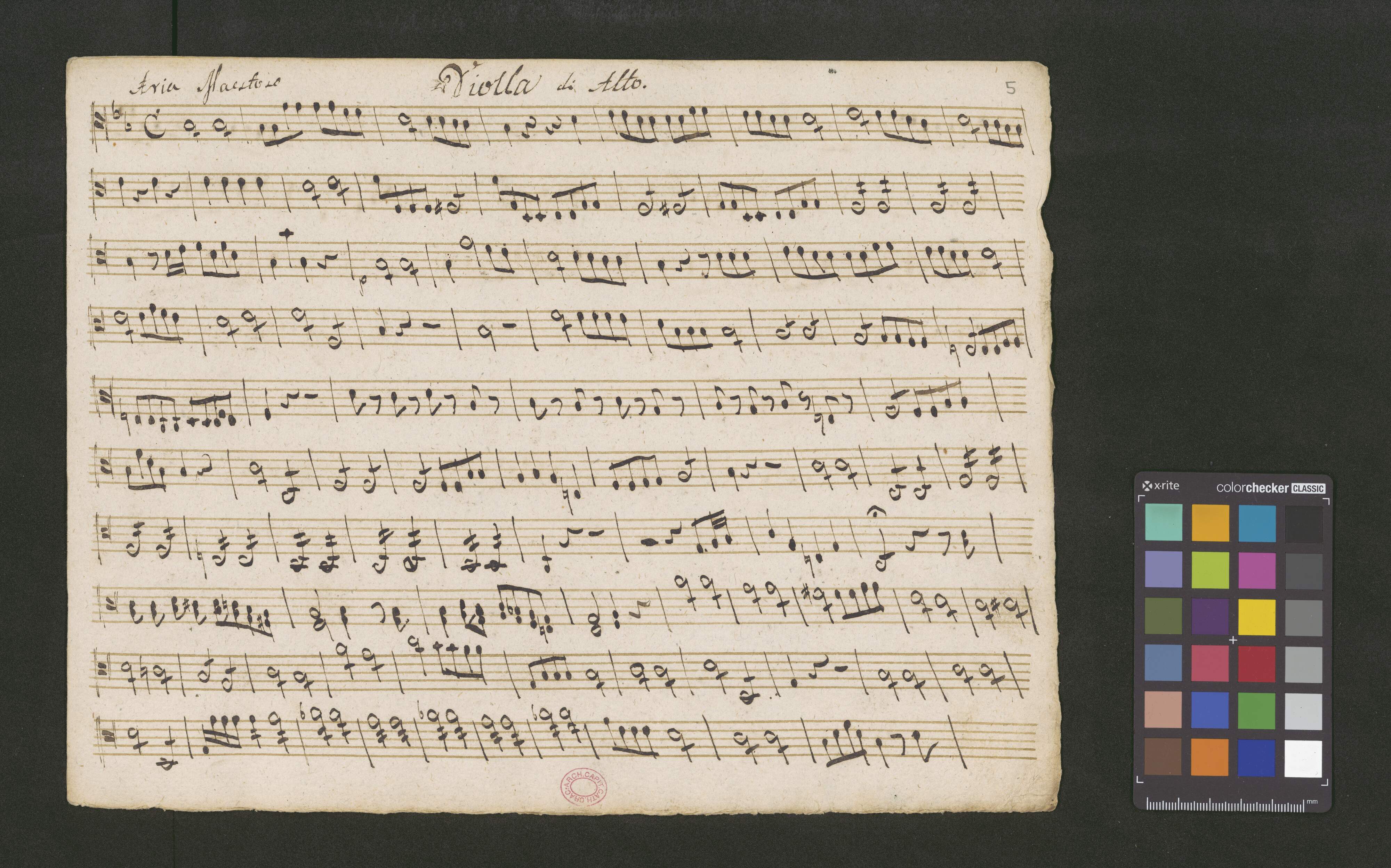 Aria Con piu Stromenti In B. | Soprano Solo | Due Violini | Due Oboe | Due Corni | Viola | e | Basso | Del Signiore Salieri