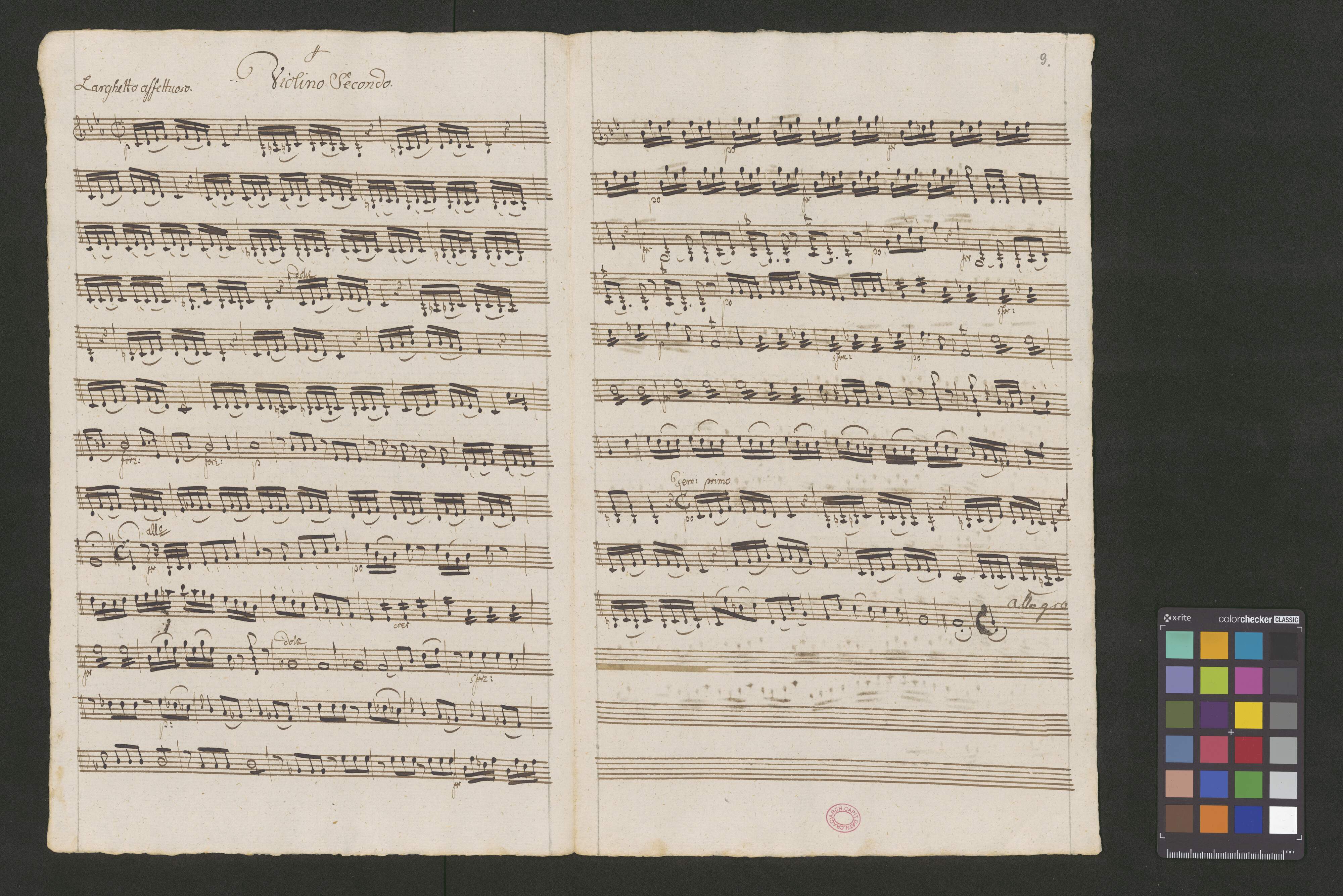 Aria In C° moll. | a | Canto Solo. | Violinis 2|b|u|s | Obois 2|b|u|s | Cornis 2|b|u|s |i|n |D|i|s | Viola | con | Basso. | Del Sigl Traeta