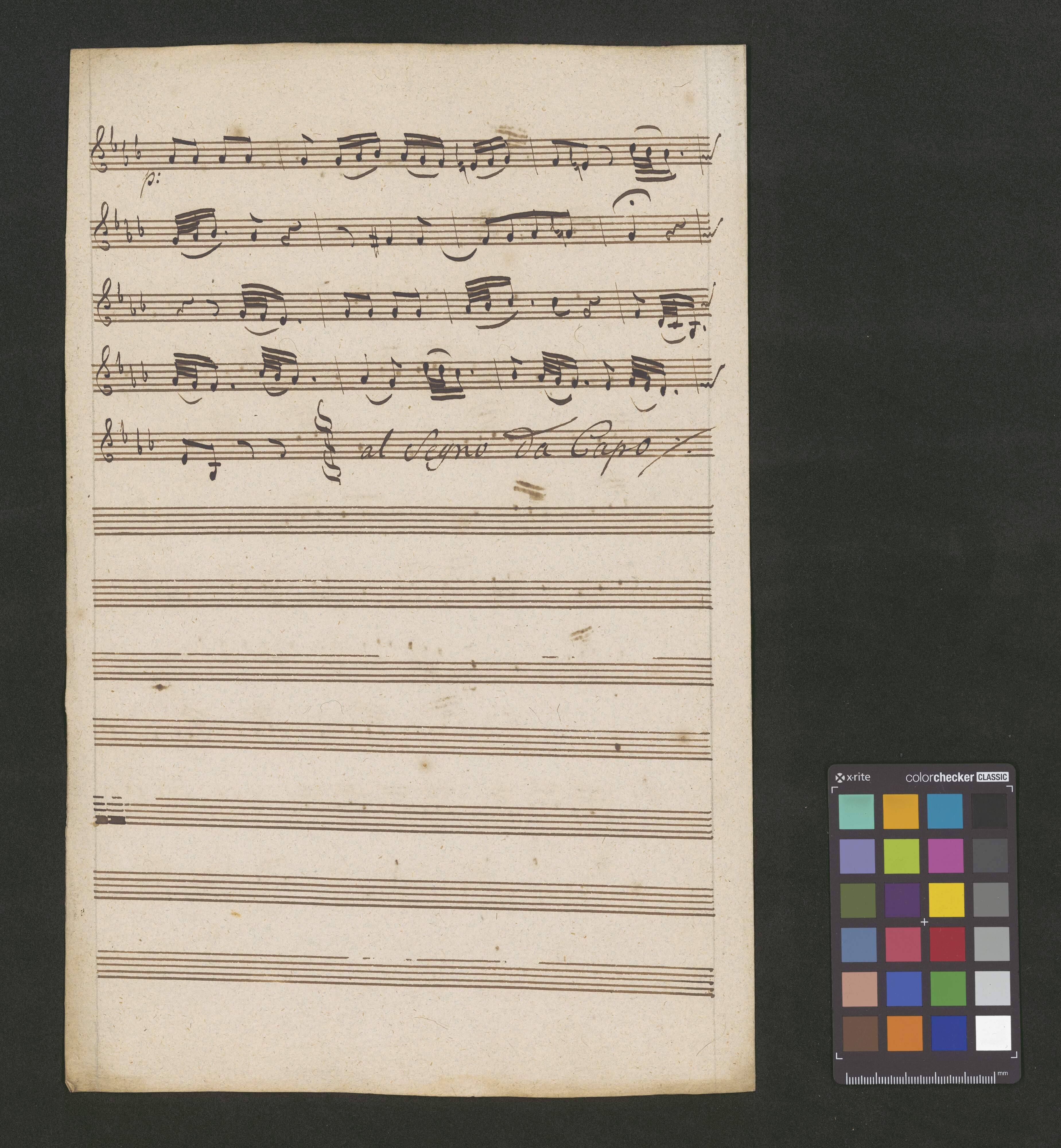 Aria 2. | à 5|t|o. | Canto Solo. | Violino Primo | Violino Secundo | Viola di Alto | è | Basso. | Del Sig|r|e.. Wagenseil