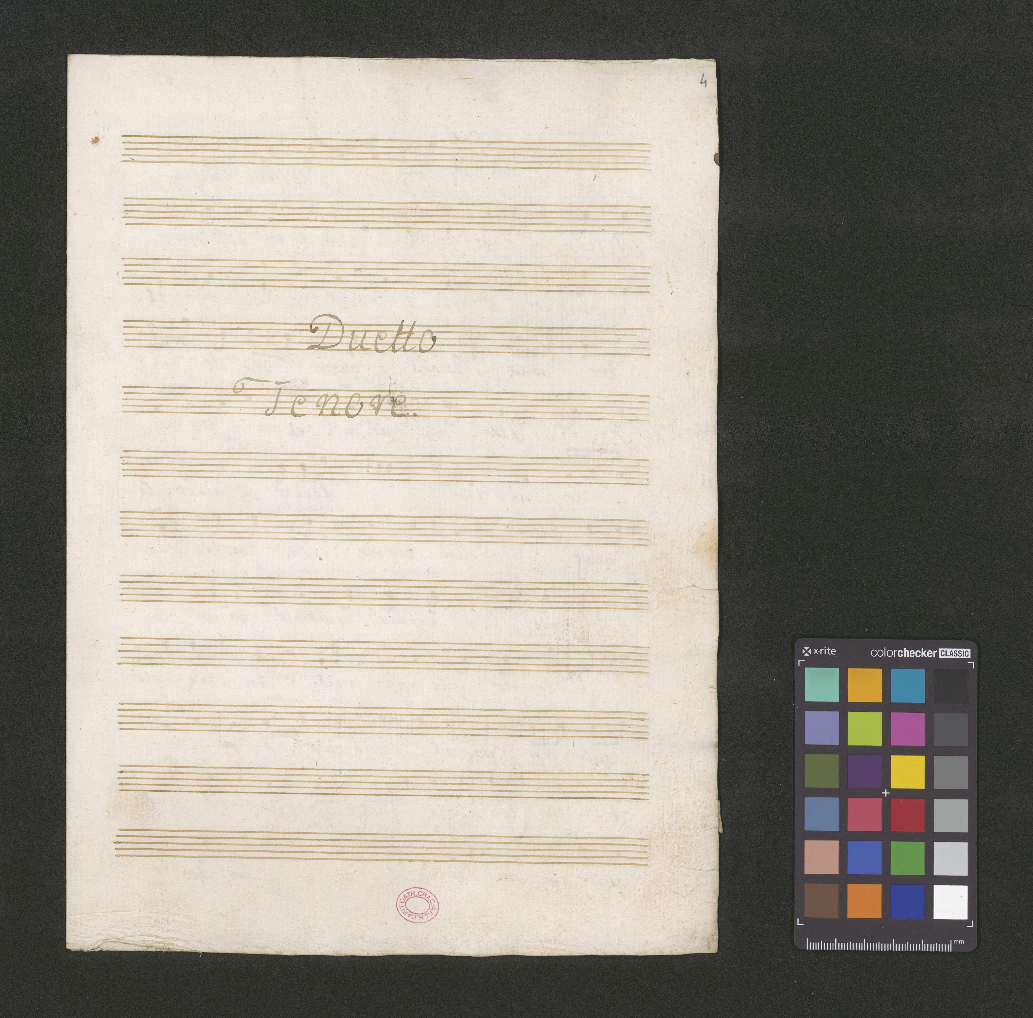 N|o 5. | Duetto. In G. | Canto è Tenore | Due Violini | Due Viole | Due Corni | Con | Basso | [ręką Karola Lochmana:] Comparata noviter a[nn]o 1796 dieb[us] 9bris. CLochman C[anoni]c[us] et A[rchi]pr[esb]it[er] Crac[oviensis] Musicae Prefectus