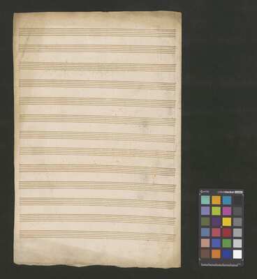 [pl-text: Rękopis niekompletny, zachowana partia S solo 1 i fragment partii vl 2.], [pl-text: Na 1r rysunek przedstawiający czarną pieczęć z nieczytelnymi inicjałami.], [pl-text: Foliacja w źródle naniesiona ołówkiem.], [pl-text: Pieczęć okrągła o treści "ARCHIWUM I BIBLIOTEKA | Krakowskiej Kapituły Katedralnej | Kk.I. | 597" na 3r.], [pl-text: Mała, czerwona, owalna pieczęć o treści "CATH. CRAC. * ARCH. CAPIT." na 1r i 2r.]