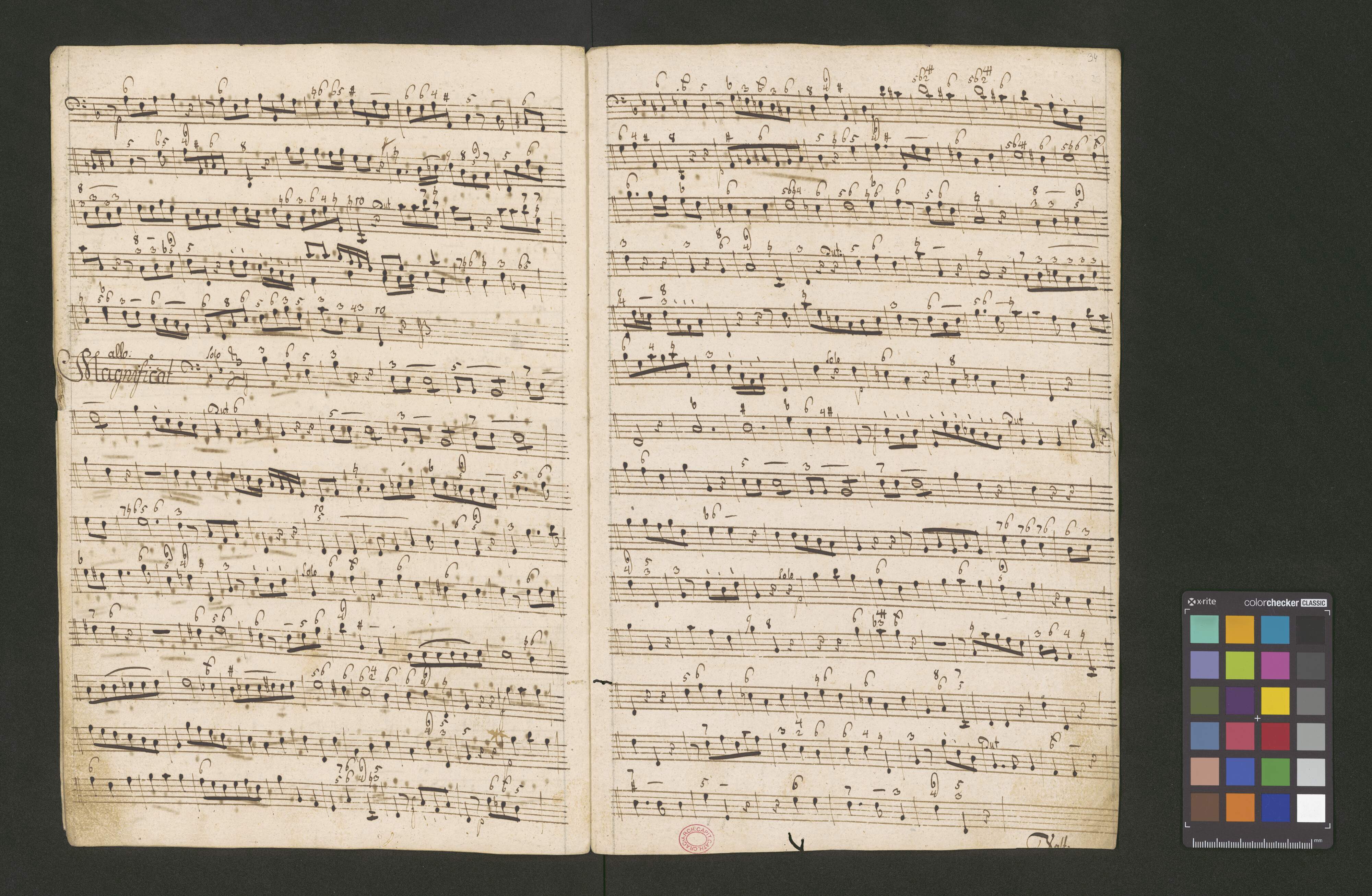 Vespere Solennes. | M. D: V: Mariæ | a | C: A: T: B: | Violini Due | Clarini Due B. | con | Organo. | del Sig. Brixi. | La Musica | del Coro