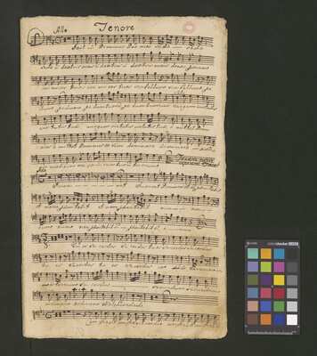 [pl-text: Konkordancje: ID RISM 300000042, 300000043.], [pl-text: Na trzeciej i czwartej stronie okładki zapisana partia T solo (bez tekstu) arii „Non hai cor se in mezzo a questi” z opery La Betulia liberata Pasquale Anfossiego, ID RISM 858000003.], [pl-text: Foliacja w źródle naniesiona ołówkiem.], [pl-text: Pieczęć okrągła o treści "ARCHIWUM I BIBLIOTEKA | Krakowskiej Kapituły Katedralnej | Kk.I. | 621" na drugiej stronie okładki.], [pl-text: Mała, czerwona, owalna pieczęć o treści "CATH. CRAC. * ARCH. CAPIT." na trzeciej stronie okładki oraz na stronach recto wszystkich kart.]