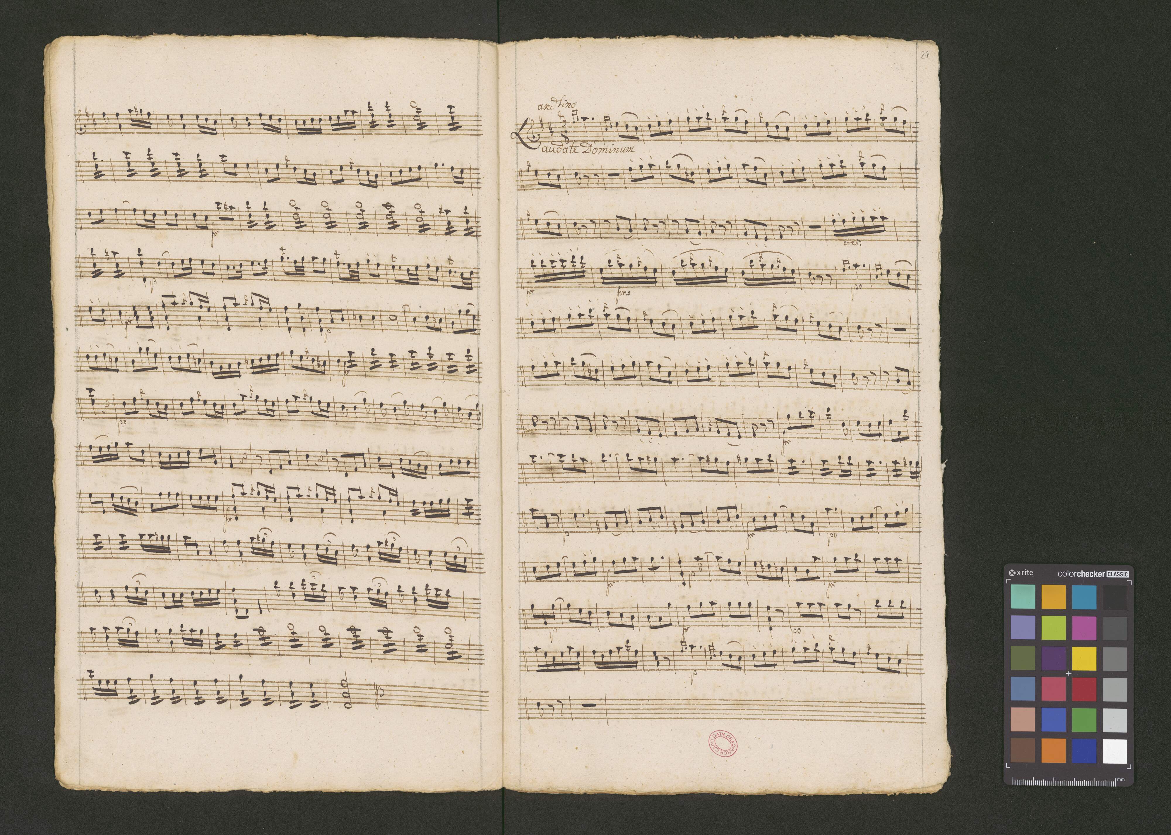 Vesperæ de Confessore in D|♯ | Auresichio | et Cassali | a | Canto 1|m|o et 2|d|o, Alto | Tenore Basso | Violinis 2bus duplicatis | Obois 2bus | Cornibus 2bus | Alto Viola | et | Basso duplicato. | Pro usu Ecclesiæ Cathedralis Cracoviensis