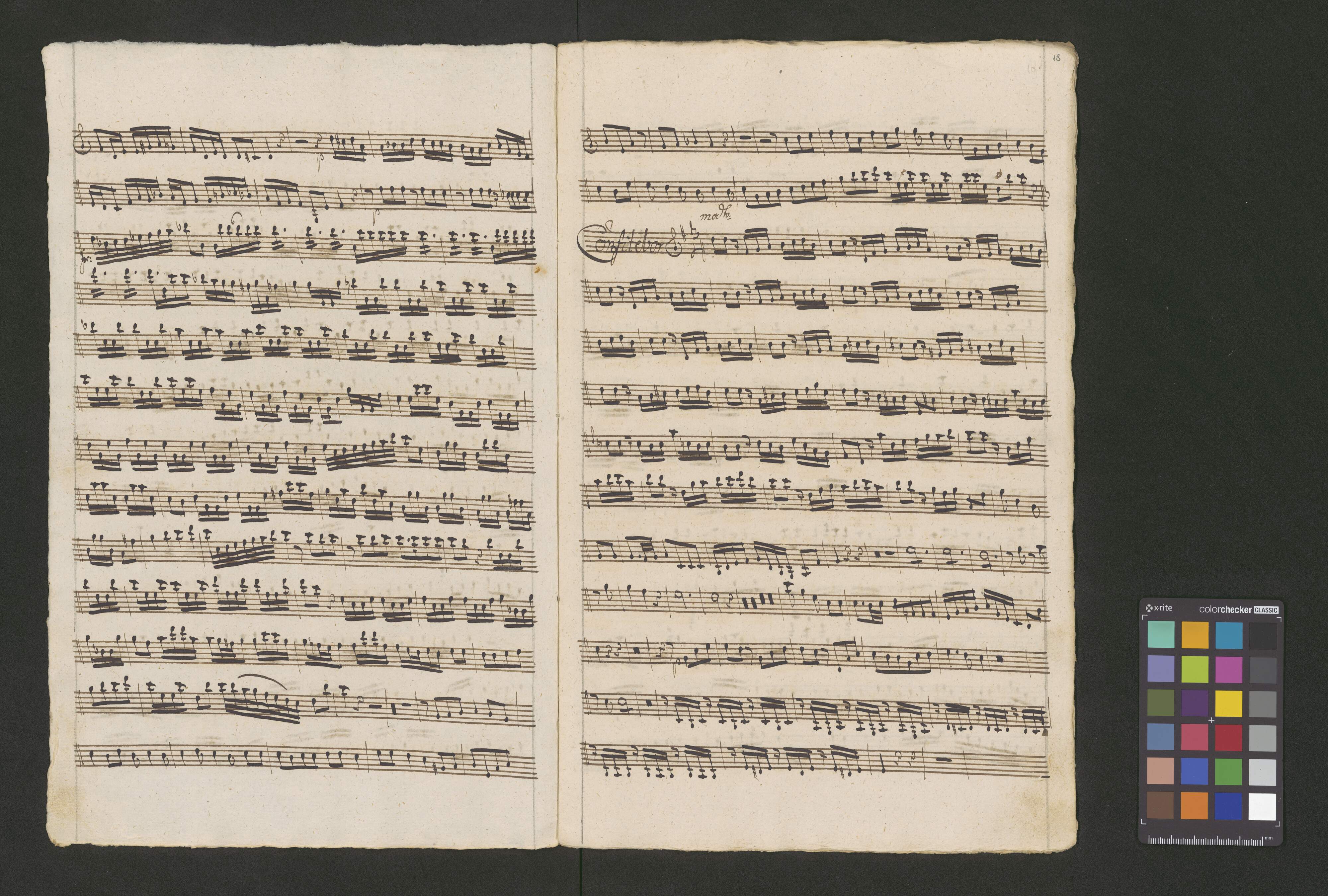 Vesperæ in C | De [crossed out:] Beata [added:] Confessoribus | a | Canto Alto. | Tenore Basso. | Violino Primo duplicato Violino Secundo | Oboa Prima Oboa Secunda | Clarino Primo Clarino Secundo | con | Organo. duplicato. | Del Signore Josepho Majer de Lichtna