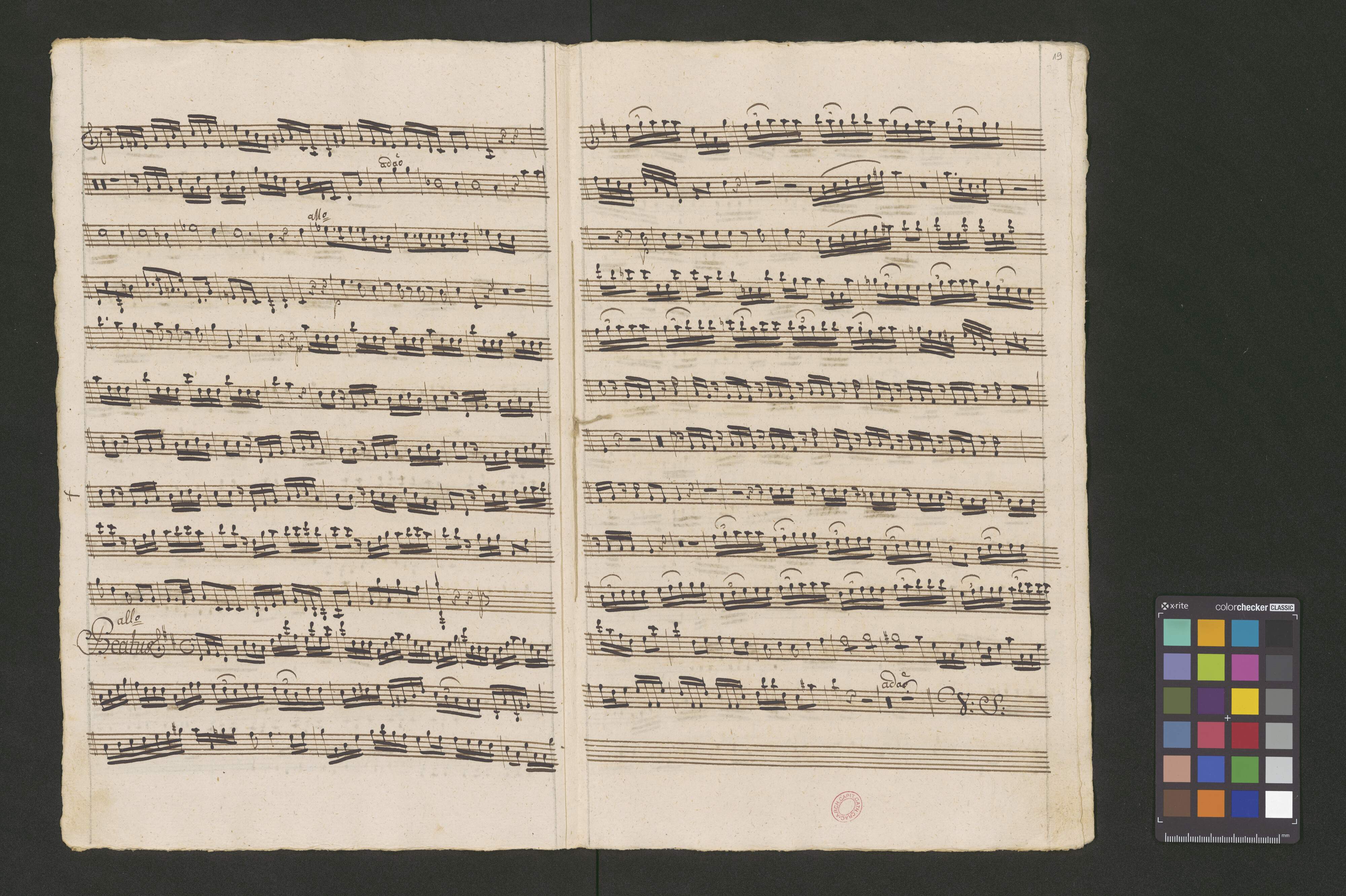 Vesperæ in C | De [crossed out:] Beata [added:] Confessoribus | a | Canto Alto. | Tenore Basso. | Violino Primo duplicato Violino Secundo | Oboa Prima Oboa Secunda | Clarino Primo Clarino Secundo | con | Organo. duplicato. | Del Signore Josepho Majer de Lichtna