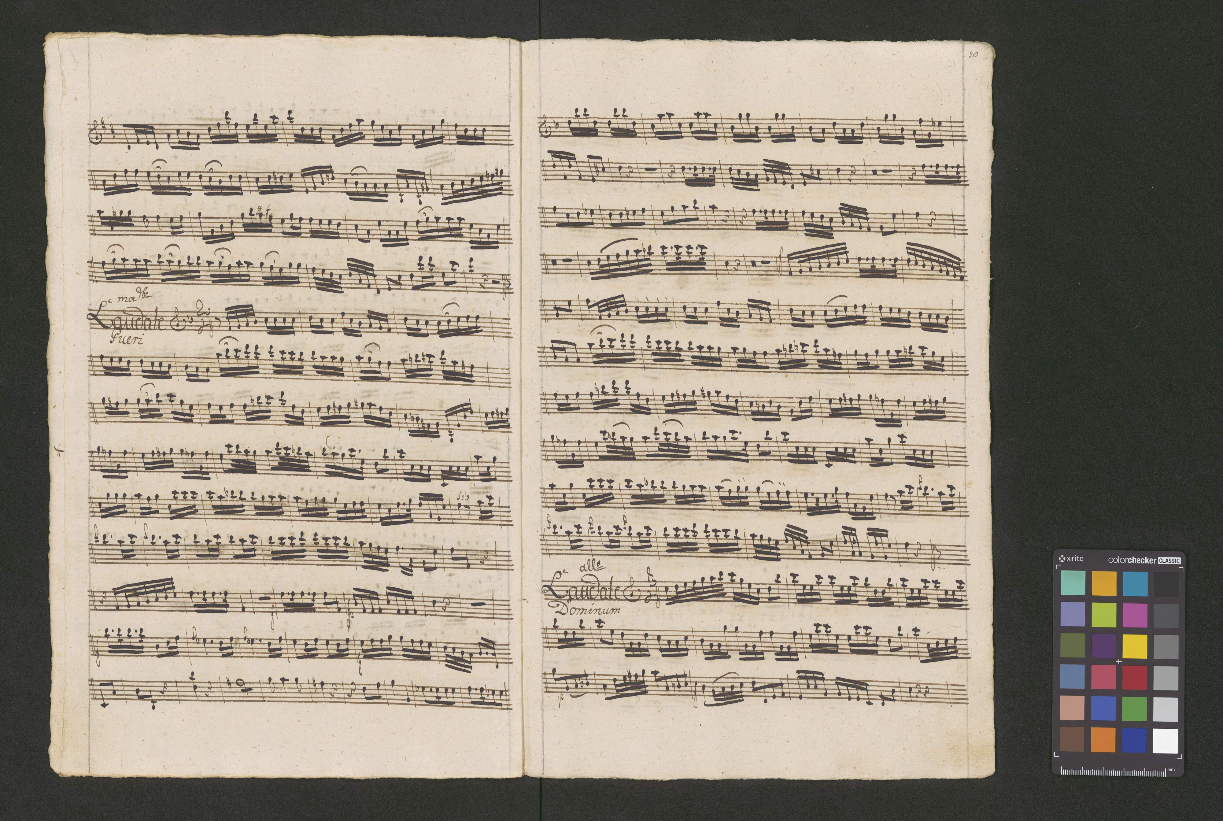 Vesperæ in C | De [crossed out:] Beata [added:] Confessoribus | a | Canto Alto. | Tenore Basso. | Violino Primo duplicato Violino Secundo | Oboa Prima Oboa Secunda | Clarino Primo Clarino Secundo | con | Organo. duplicato. | Del Signore Josepho Majer de Lichtna