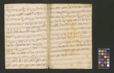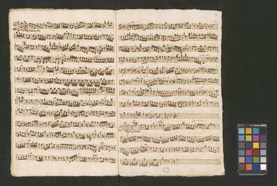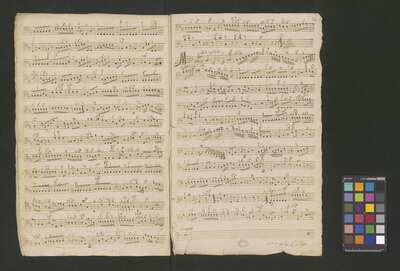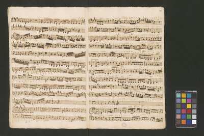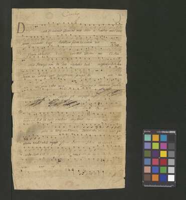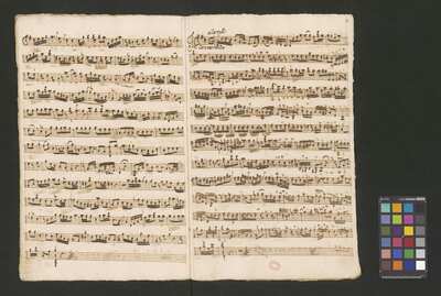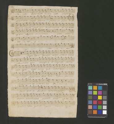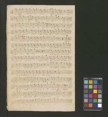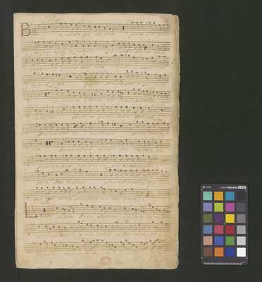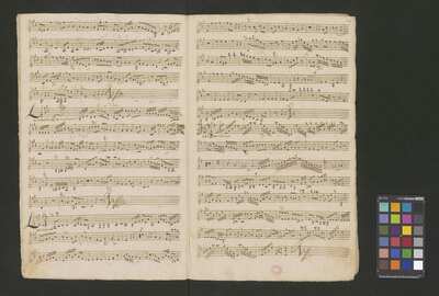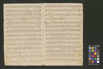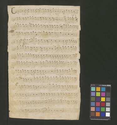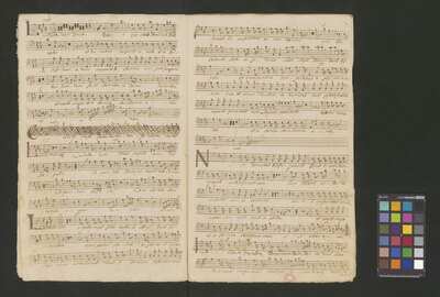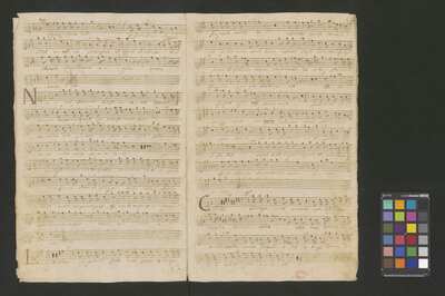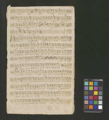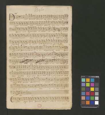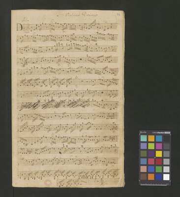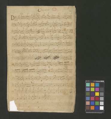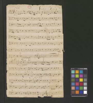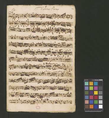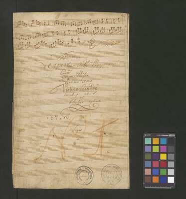 [pl-text: Konkordancje: ID RISM 300000912.], [pl-text: Na wszystkich stronach okładki zapisana partia instrumentalna (prawdopodobnie skrzypce) niezidentyfikowanej kompozycji w tonacji F-dur, podpisanej jako "Vespere in D. Bencini et Pergolesi".], [pl-text: Na 1r zapisany pomarańczową kredką duży numer "N 1.".], [pl-text: Na 1r nieczytelne inskrypcje (pojedyncze litery i słowa).], [pl-text: Foliacja w źródle naniesiona ołówkiem.], [pl-text: Pieczęć okrągła o treści "ARCHIWUM I BIBLIOTEKA | Krakowskiej Kapituły Katedralnej | Kk.I. | 628" na 1r, obok taka sama pieczęć bez wpisanej sygnatury.], [pl-text: Mała, czerwona, owalna pieczęć o treści "CATH. CRAC. * ARCH. CAPIT." na 2v oraz na stronach recto wszystkich kart.], [pl-text: Mała, niebieska, owalna pieczęć o treści "CATH. CRAC. * ARCH. CAPIT." na 2r.]