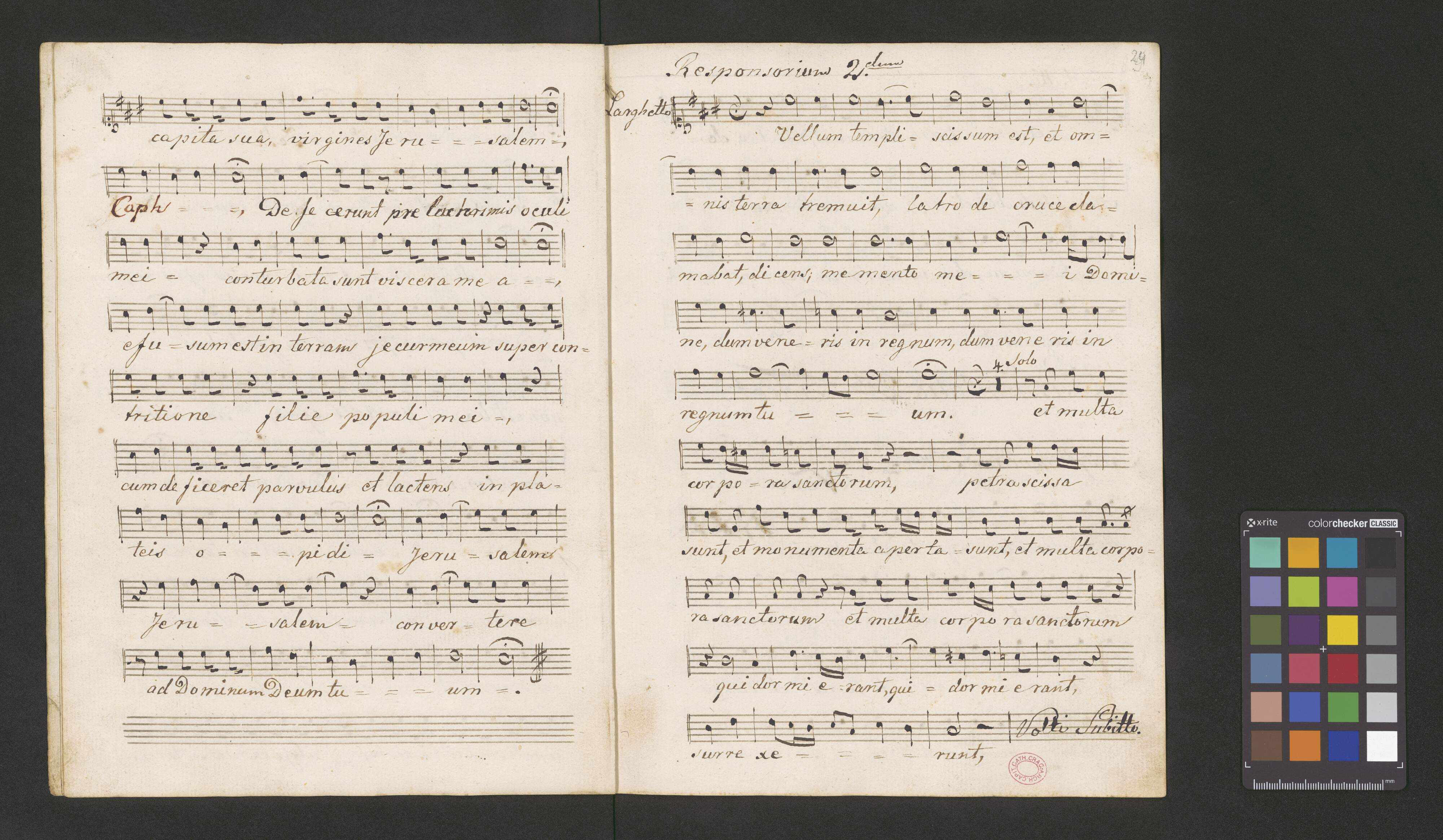 [on S:] Responsoria i Lamentacye | w Wielki Tydzien spiewane | w Kosciele Kat: Krakowskim | wypisał Kazimierz Kratzer. | w Roku 1832. | Soprano