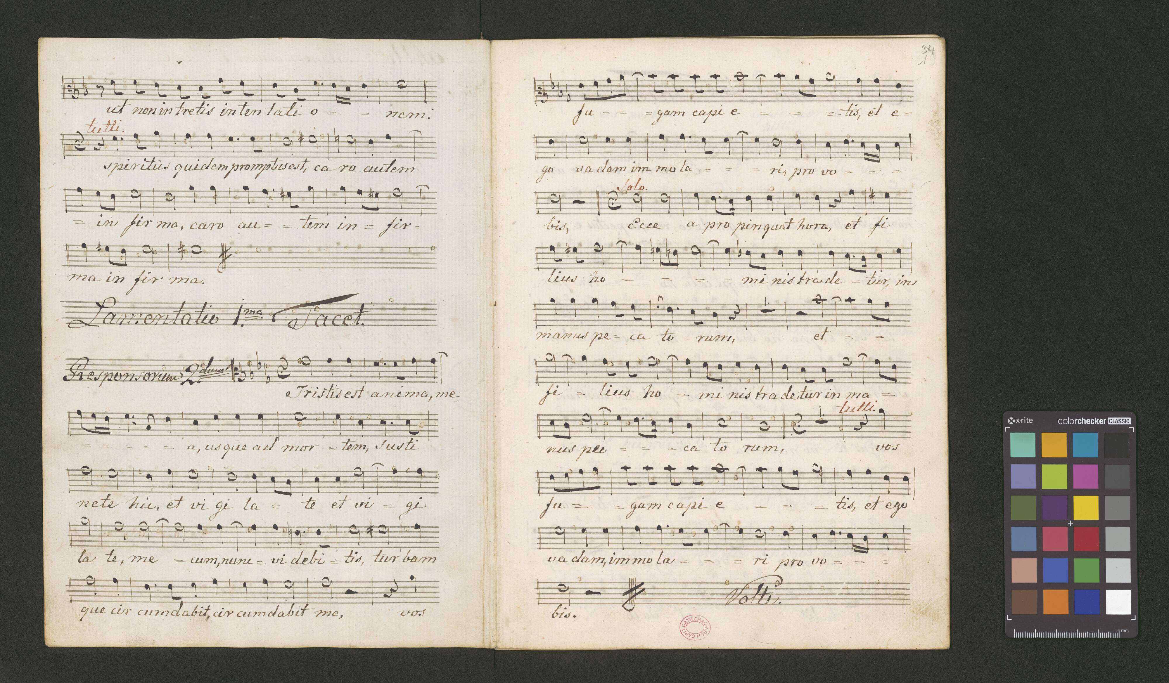 [on S:] Responsoria i Lamentacye | w Wielki Tydzien spiewane | w Kosciele Kat: Krakowskim | wypisał Kazimierz Kratzer. | w Roku 1832. | Soprano