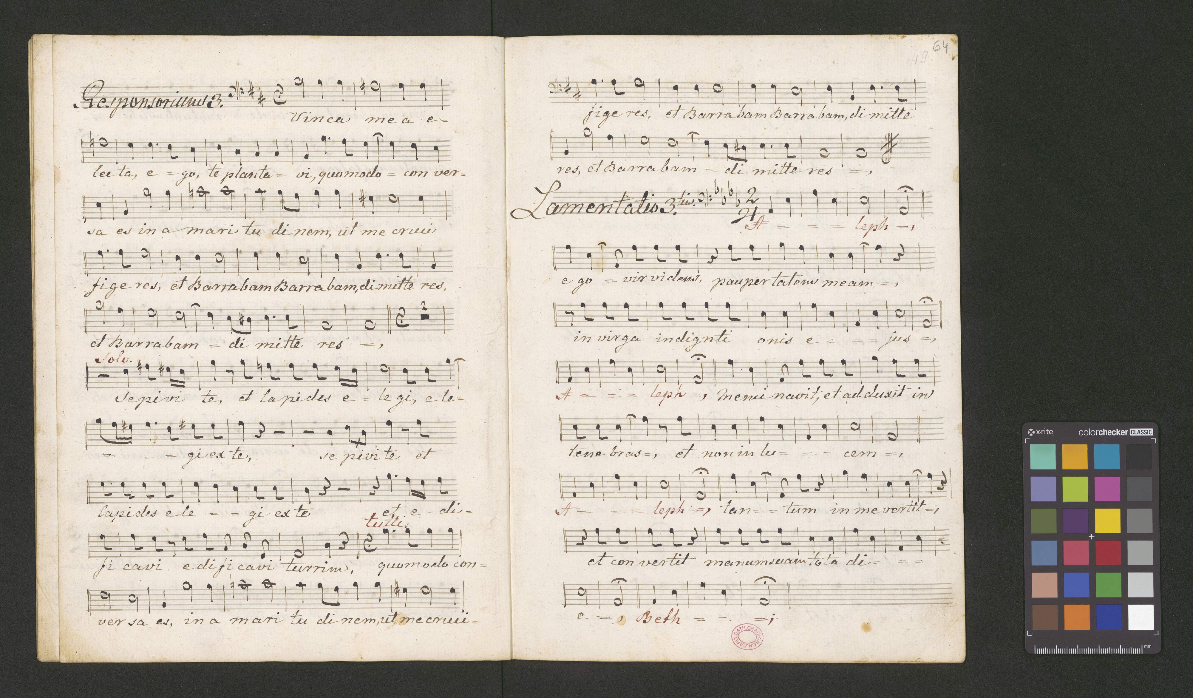 [on S:] Responsoria i Lamentacye | w Wielki Tydzien spiewane | w Kosciele Kat: Krakowskim | wypisał Kazimierz Kratzer. | w Roku 1832. | Soprano