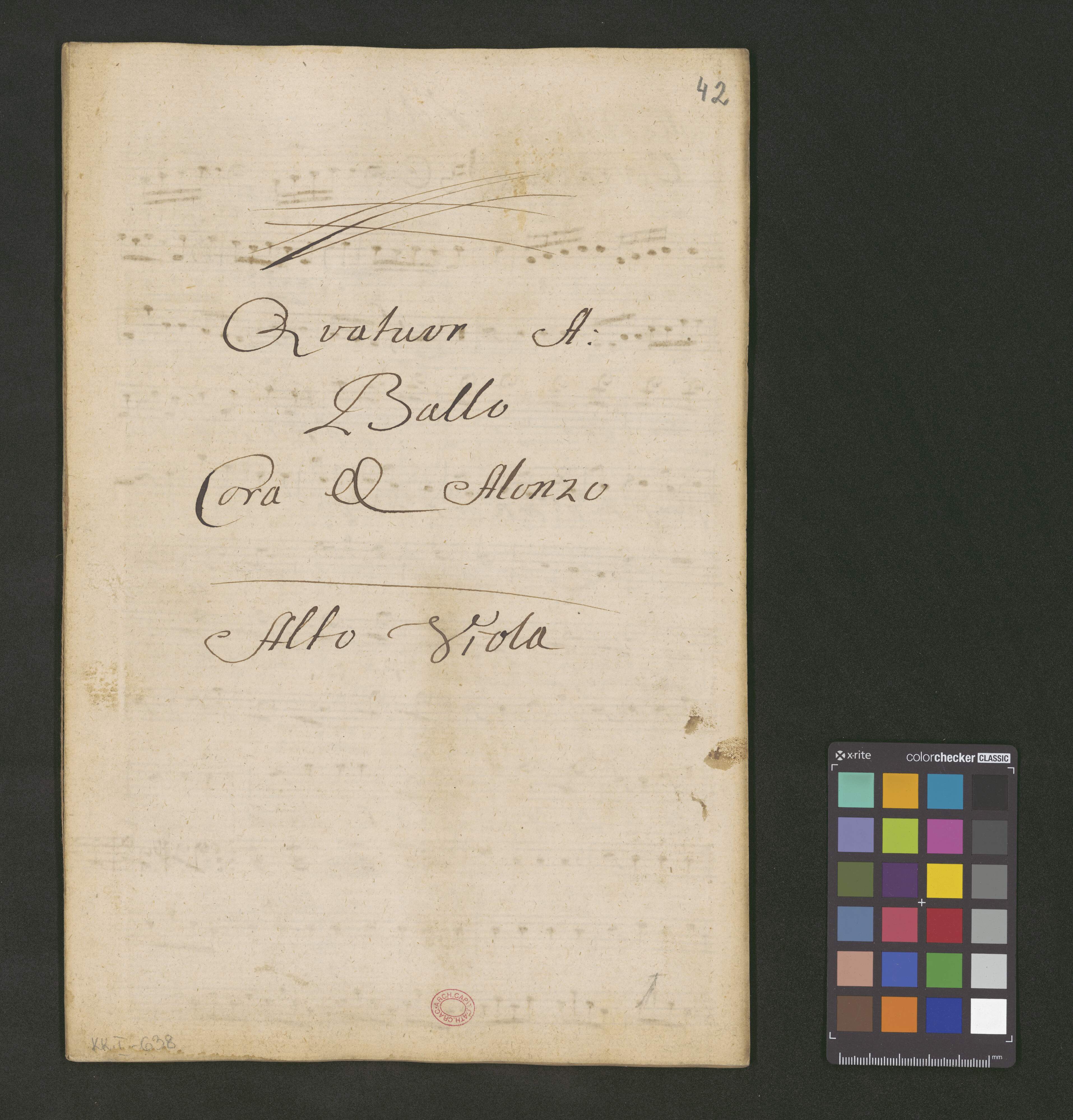 Quatuor A: | Ballo | Cora e Alonzo | Violino Primo | Violino Secundo | Alto Viola | e | Basso | Muzica Do Antonio | Capuzzi