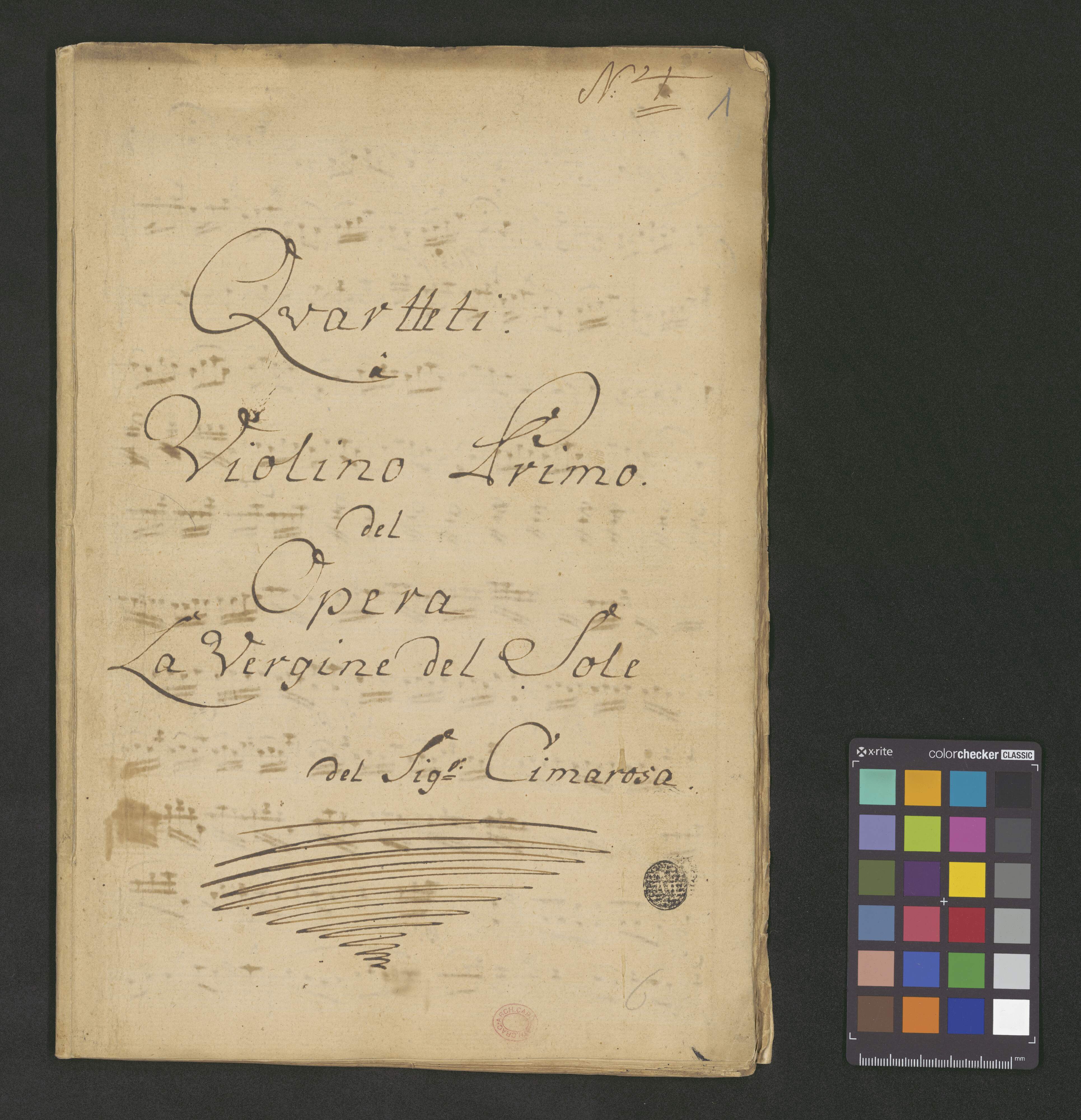 [on vl 1:] Quartetti. | à | Violino Primo. | del | Opera | La Vergine del Sole | del Sig|r|. Cimarosa