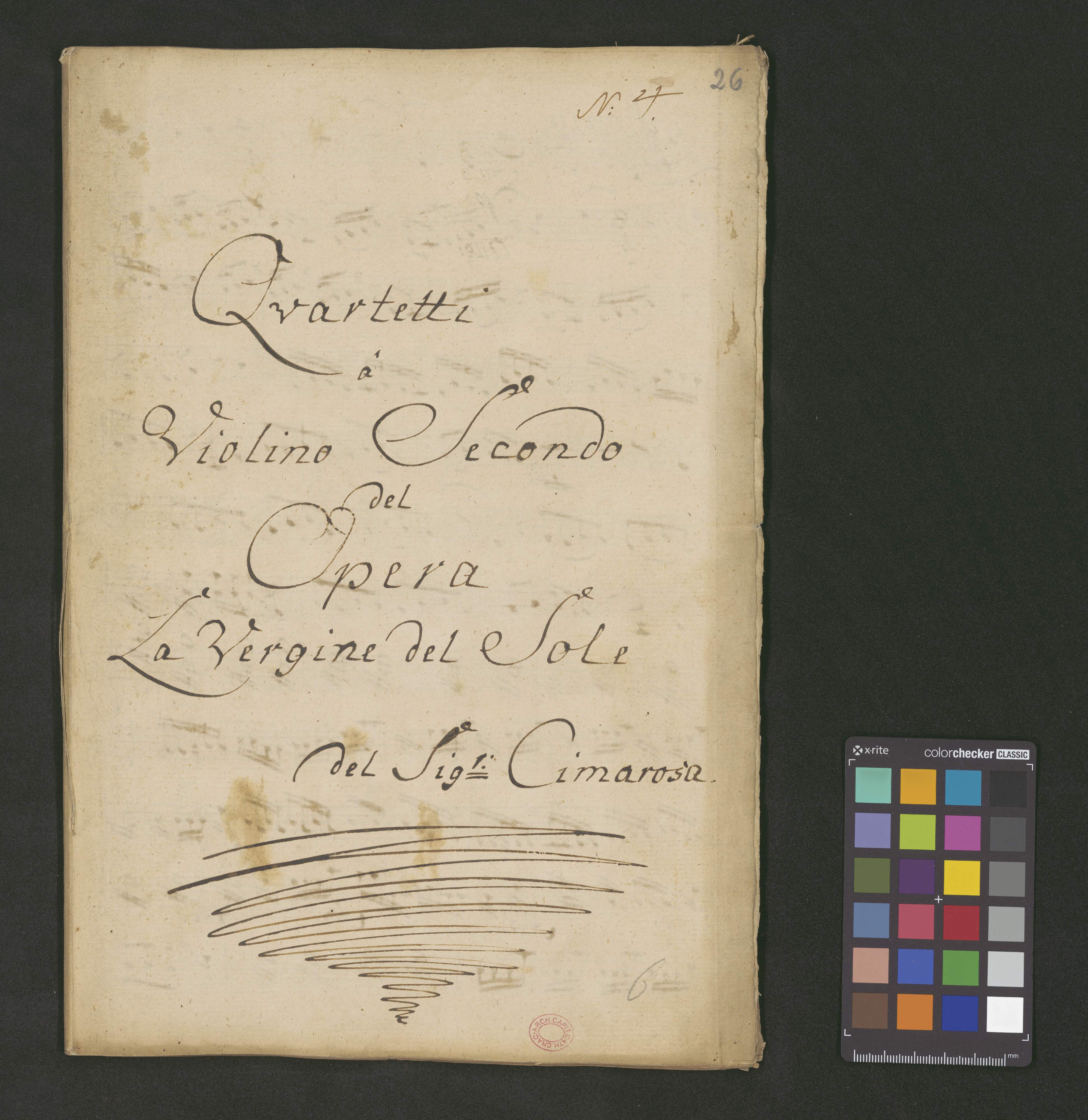[on vl 1:] Quartetti. | à | Violino Primo. | del | Opera | La Vergine del Sole | del Sig|r|. Cimarosa