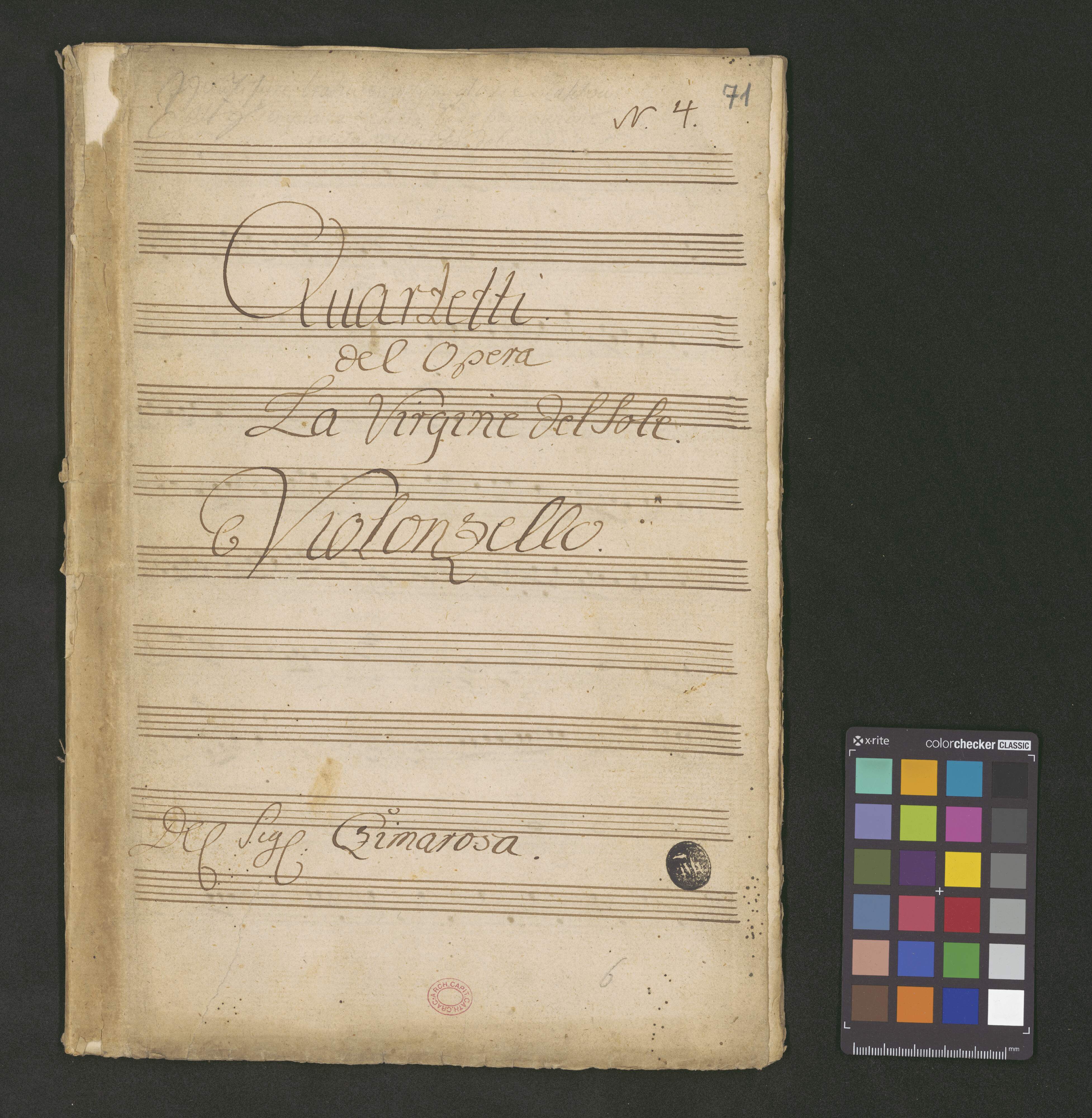 [on vl 1:] Quartetti. | à | Violino Primo. | del | Opera | La Vergine del Sole | del Sig|r|. Cimarosa