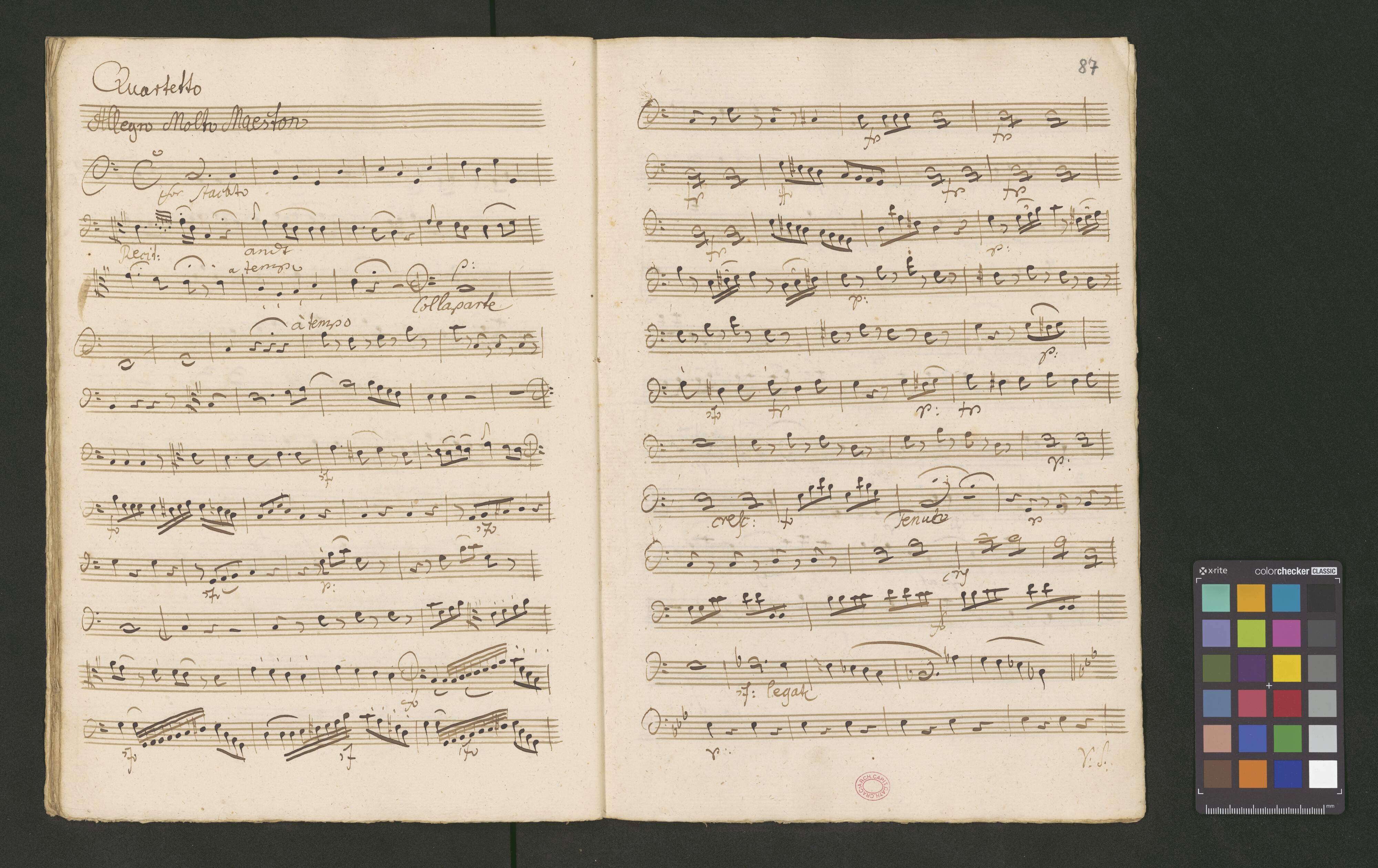 [on vl 1:] Quartetti. | à | Violino Primo. | del | Opera | La Vergine del Sole | del Sig|r|. Cimarosa