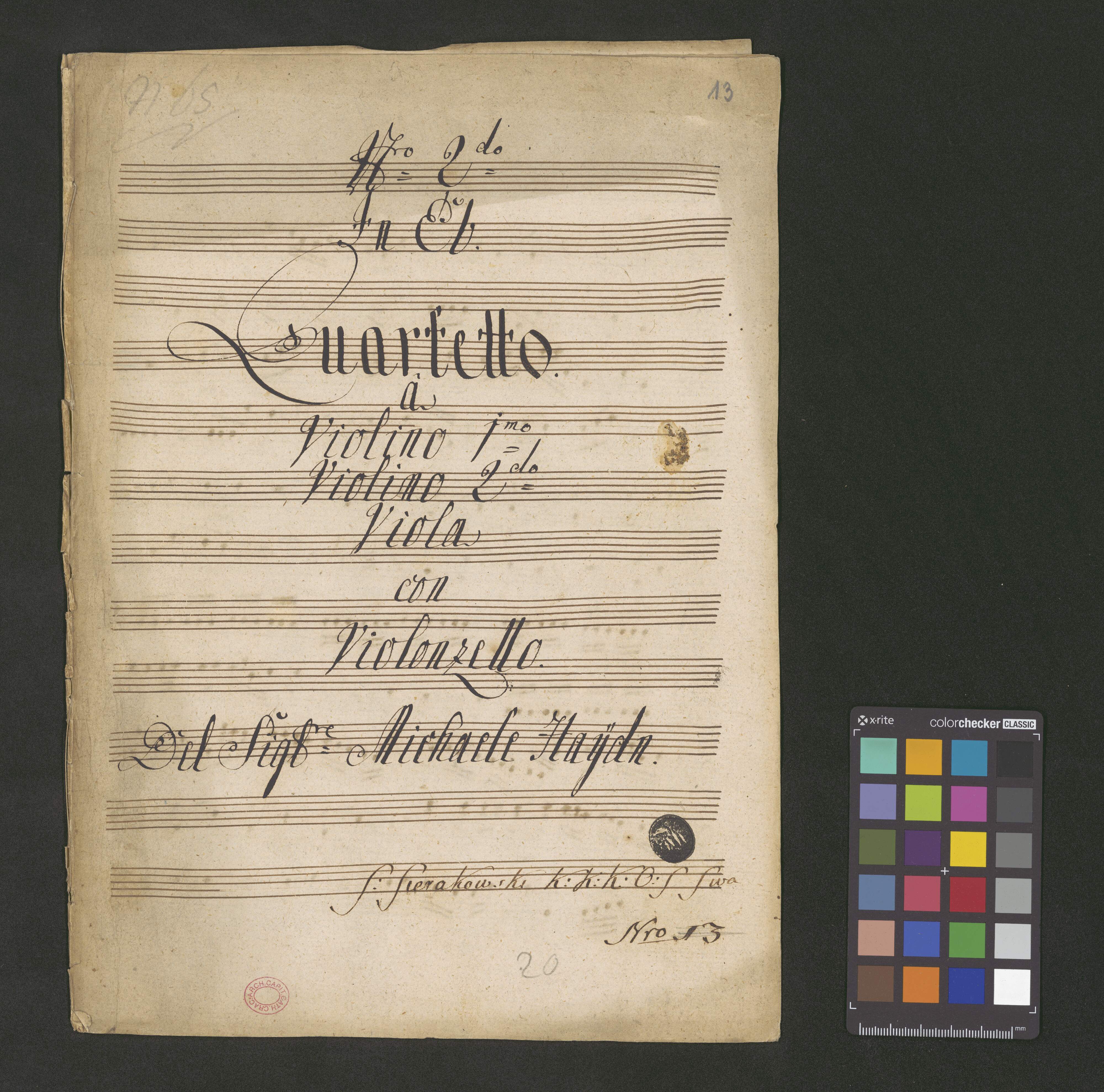 [on vlc:] N|r|o 2|d|o | In Eb. | Quartetto. | à | Violino 1|m|o | Violino 2|d|o | Viola | con | Violonzello. | del Sig|r|e Michaele Haÿdn