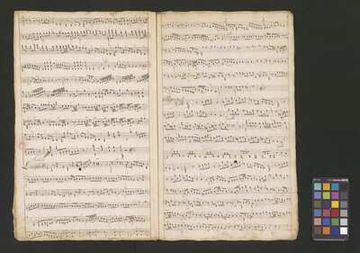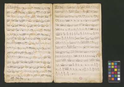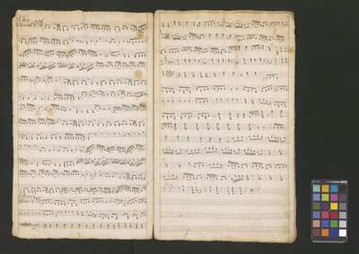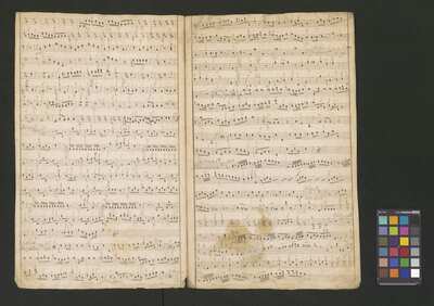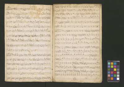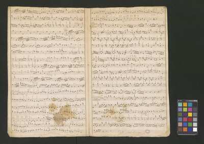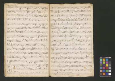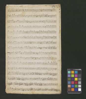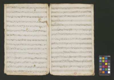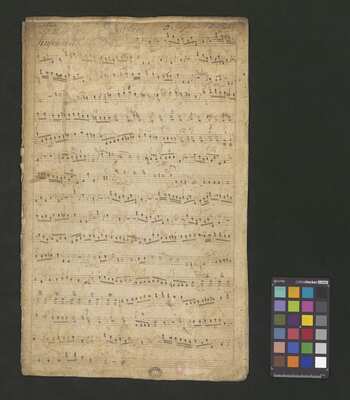 Six scores in 8 parts, [pl-text: w egzemplarzu obecne pieczęci: „ARCHIWUM I BIBLIOTEKA * Krakowskiej Kapituły Katedralnej” „CATH. CRAC. * ARCH. CAPIT.”]