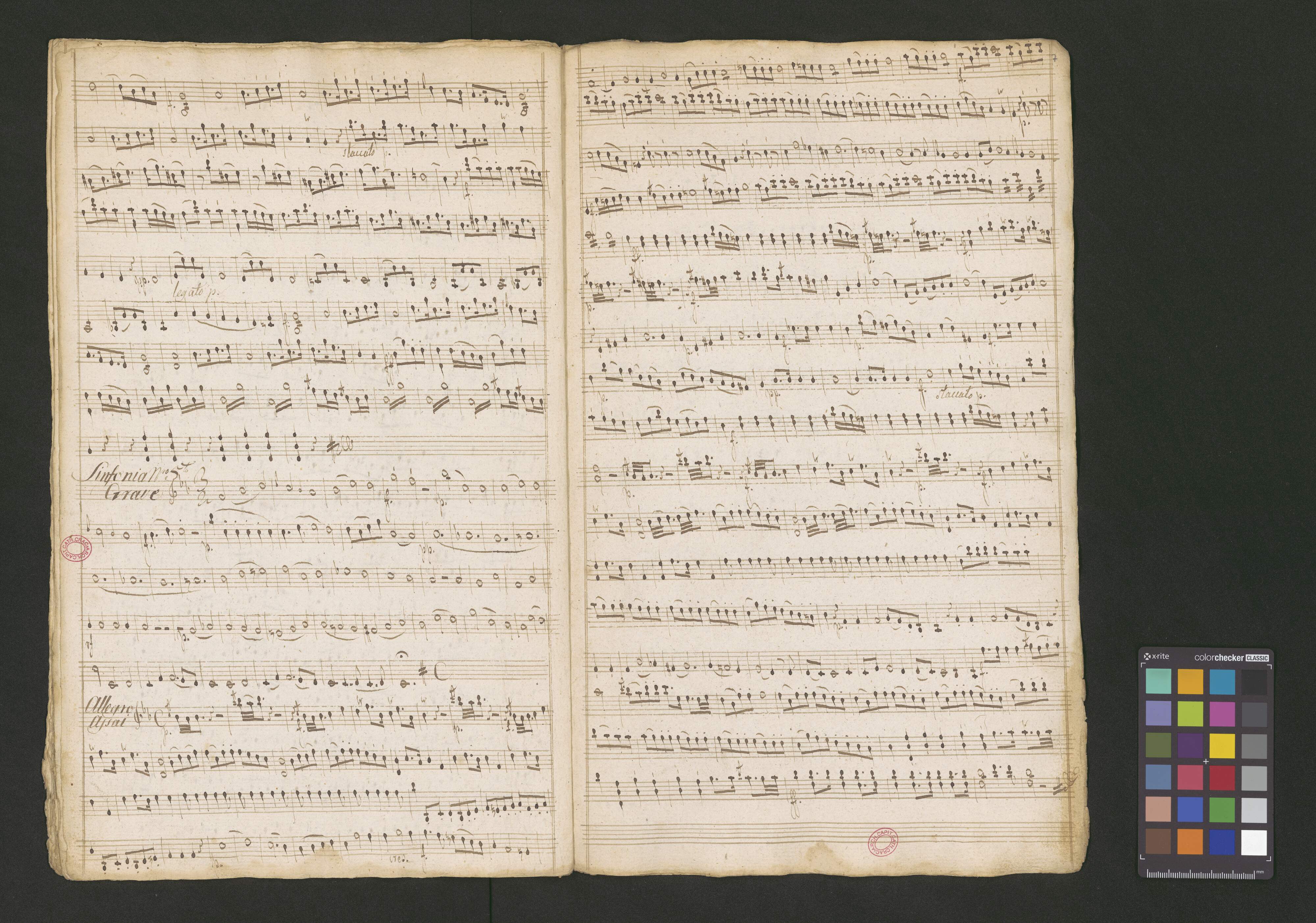 [title page:] VI | Sinfoniae in D.F.C.B.Es | a | Violinis Duobus | Flautis Duobus | Cornis Duobus | Viola et Basso | Dal Sign. Wen. Pichl