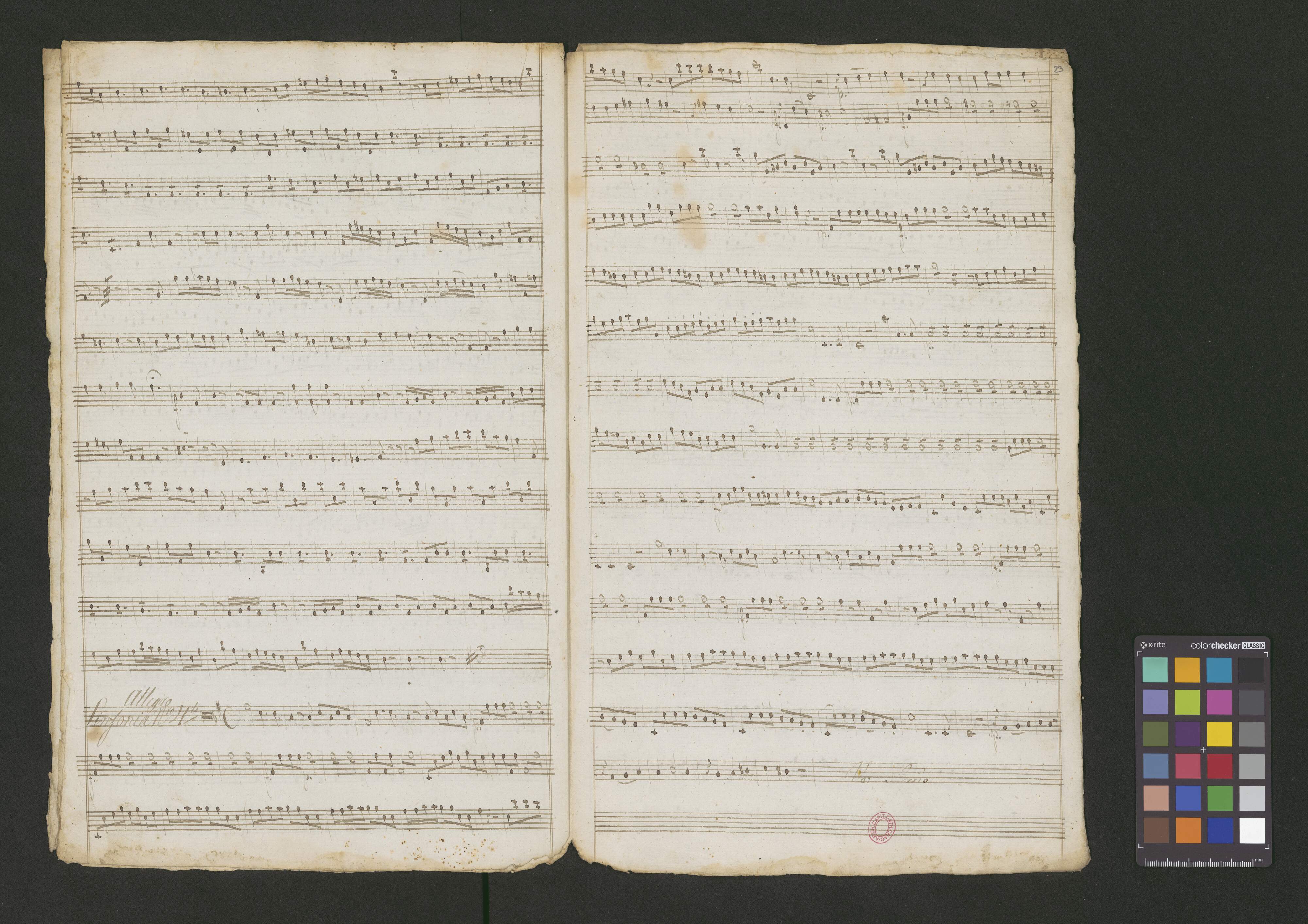 [title page:] VI | Sinfoniae in D.F.C.B.Es | a | Violinis Duobus | Flautis Duobus | Cornis Duobus | Viola et Basso | Dal Sign. Wen. Pichl