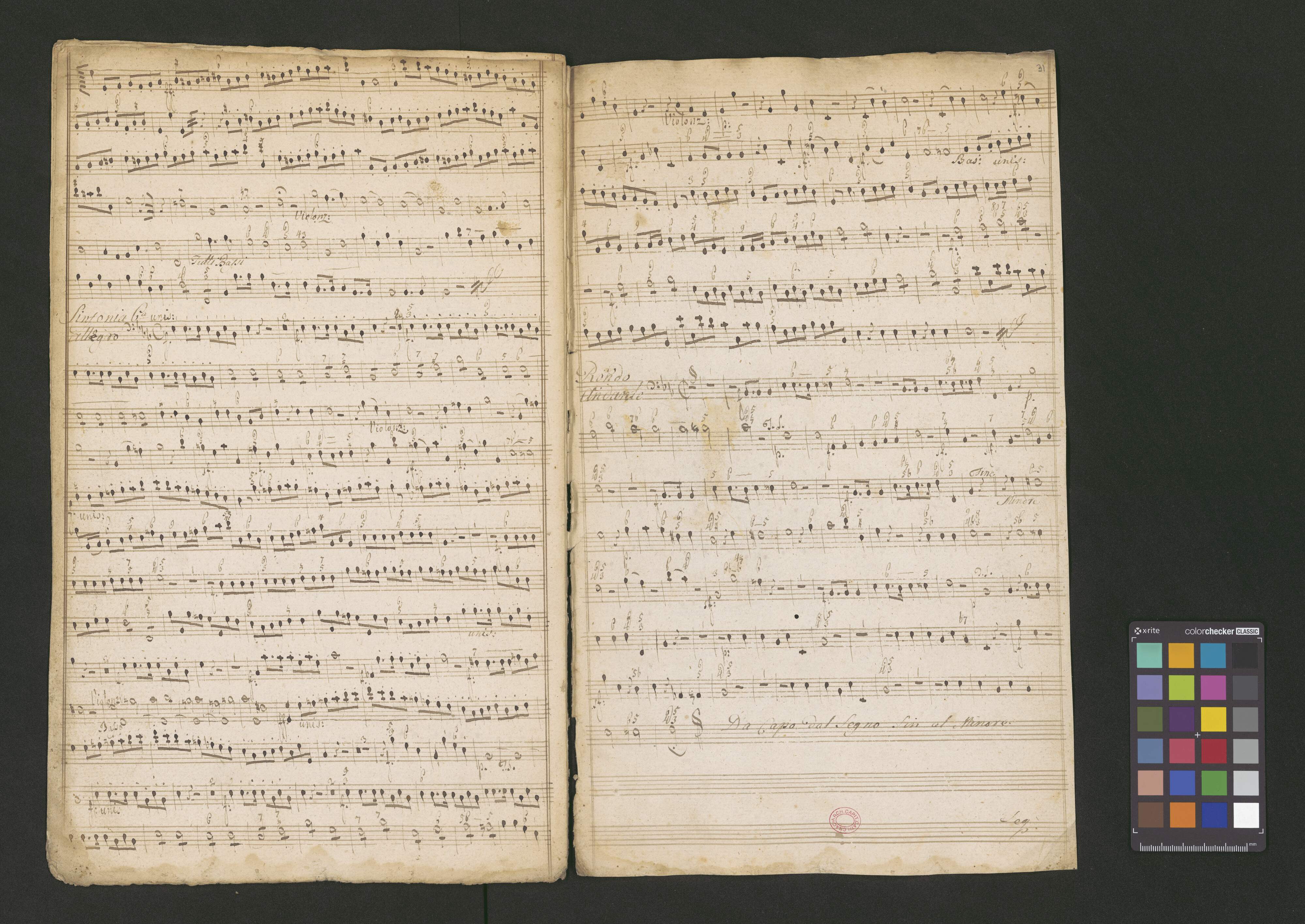 [title page:] VI | Sinfoniae in D.F.C.B.Es | a | Violinis Duobus | Flautis Duobus | Cornis Duobus | Viola et Basso | Dal Sign. Wen. Pichl