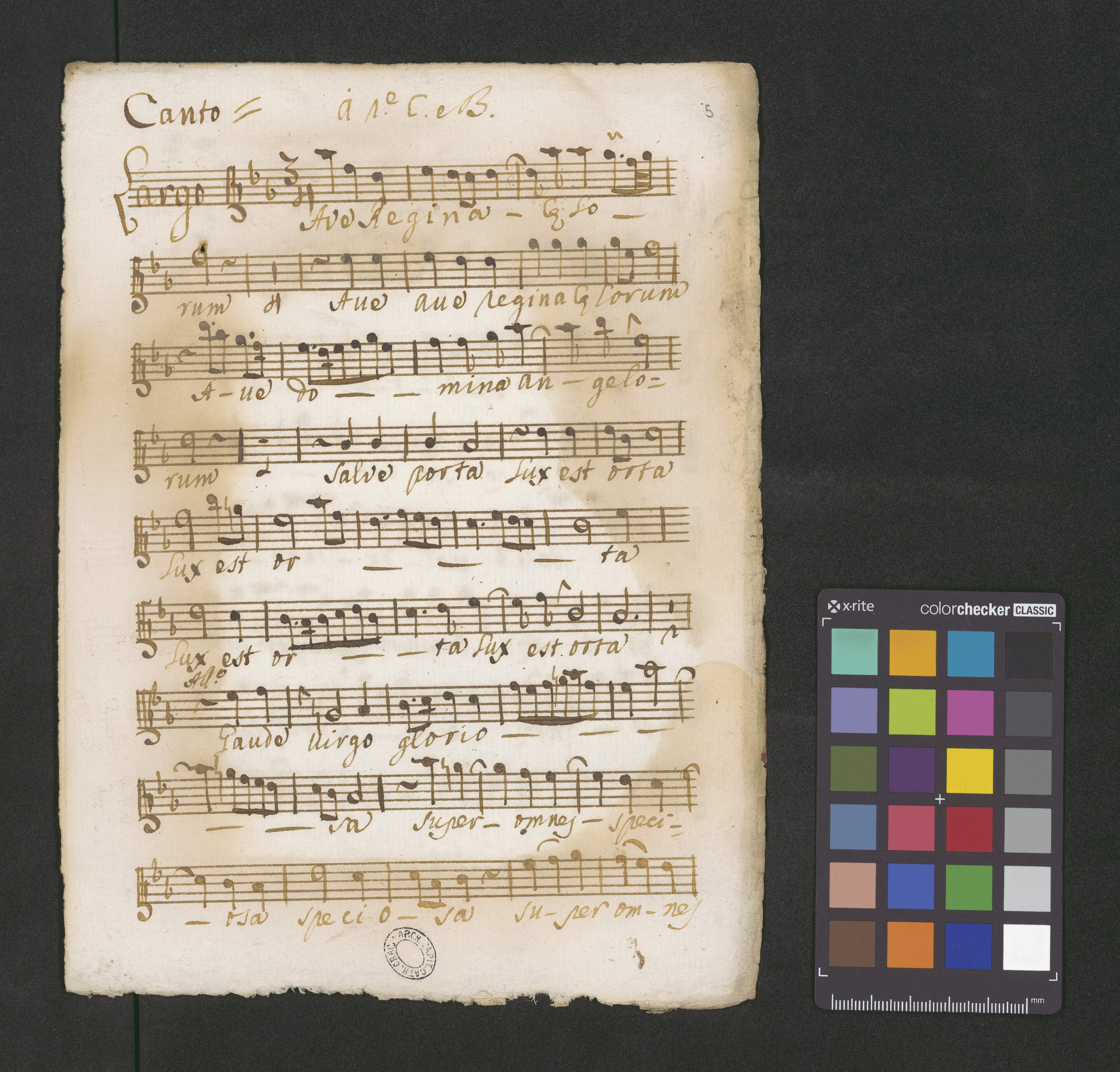 [page title:] Organo | Ave Regina Caelorum à | Due Canto e Basso