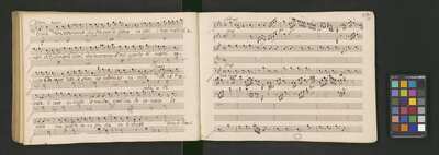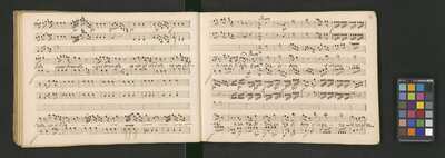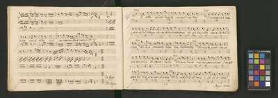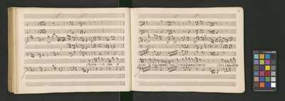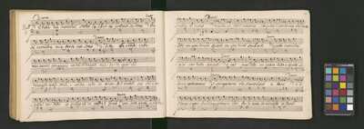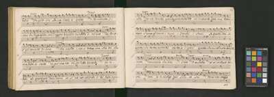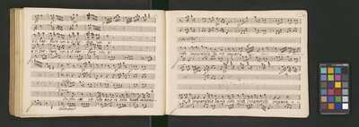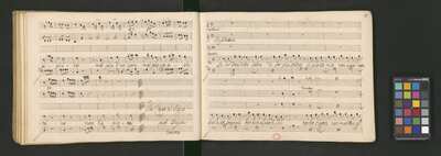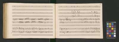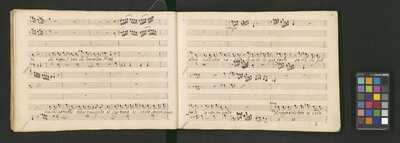[pl-text: Podpis na okładce sporządzony atramentem na papierowej naklejce wyciętej w kształt serca.], [pl-text: Partytura/księga obłożona okładką. Tylna okładka, razem z dwoma ostatnimi kartami oderwane od całości.], [pl-text: Foliacja naniesiona ołówkiem.], [pl-text: W źródle spisane cztery partytury; ostatni utwór spisany przez innego kopistę niż trzy wcześniejsze.], [pl-text: Pieczęć: „CATH. CRAC. * ARCH. CAPIT.” (czarna) na f. 34r; czerwona na wewnętrznej stronie końcowej okładki, f. 1r, 30r, 35r, 40r, 45r, 55r, 66, 71r, 76r, 81r, 86r, 88r, 89r, 90r; Pieczęć: „ARCHIWUM I BIBLIOTEKA”, „Krakowskiej Kapituły Katedralnej” z sygnaturą wpisaną ołówkiem na wewnętrznej stronie okładki (na odwrocie k. tytułowej).], [pl-text: F. 45v-46r niezapisane.]