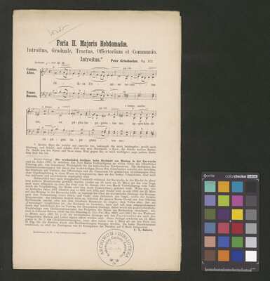 5 sacred songs, [pl-text: Na pierwszej stronie komentarz Franza Xavera Haberla.], [pl-text: Na pierwszej stronie inskrypcja ołówkiem o treści "wzór".], [pl-text: Pieczęć okrągła o treści "ARCHIWUM I BIBLIOTEKA | Krakowskiej Kapituły Katedralnej | KK | -III-114" na pierwszej stronie.], [pl-text: Mała, czerwona, owalna pieczęć "CATH. CRAC. * ARCH. CAPIT." na piątej stronie.]