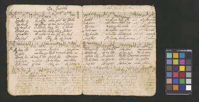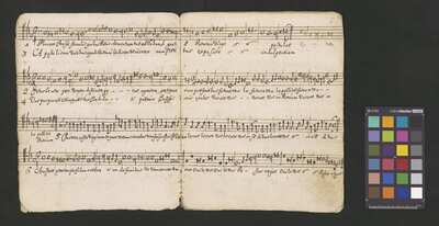 Sacred songs, [pl text: Pieczęć: „ARCHIWUM I BIBLIOTEKA”, „Krakowskiej Kapituły Katedralnej” Kk.I.8 na nienumerowanej przedniej karcie ochronnej verso księgi partii głosowej Alto, tenore 1mo, Tenor 2dus, Bassus], [pl text: na tylnej wyklejce w księdze "Alto" atramentem zanotowany jest spis utworów], [pl text: W księgach A, T1, T2, B na okładzinach tylnych są naklejone nowoczesne naklejki z papieru z napisem drukowanym "Archiwum Katedry Krakowskiej" oraz napisana ołówkiem sygnatura Kk-I-8], [pl text: Księgi głosowe mają okładkę z papieru w średnim stanie. Księgi T2 i B nie mają okładziny tylnej]