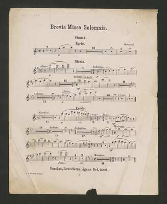 [pl-text: Na str. [1] partytury strona tytułowa, str. [2] pusta.], [pl-text: Okładka przednia jako luźna karta.], [pl-text: Złączone pierwsza i ostatnia karta partytury osobno.], [pl-text: Na pierwszej stronie okładki i na stronie tytułowej u dołu pieczęć: "REDAKČNÍ EXEMPLÁŘ | Z KNĔHKUPECTVÍ URBÁNKOVA."], [pl-text: Na drugiej stronie okładki pieczęć: „ARCHIWUM I BIBLIOTEKA”, „Krakowskiej Kapituły Katedralnej”.], [pl-text: We wszystkich głosach na str. 1 oraz w partyturze na str. 3 w lewym górnym rogu ołówkiem sygnatura: "KK-III-163".], [pl-text: Na str. 1 w S w prawym górnym rogu niebieskim długopisem: "467", przekreślone.], [pl-text: Na str. 1 w T w lewym górnym rogu ołówkiem: "26/3, 94. | 13/5 94. | 24/ 94 | 8/5 95."; w prawym górnym rogu ołówkiem: "Skuherský 47".], [pl-text: Na str. 1 w B w prawym górnym rogu niebieskim długopisem: "Skuherský".], [pl-text: Na str. 2 w cl 2 w lewym dolnym rogu niebieskim długopisem wertykalnie: "556".], [pl-text: We wszystkich głosach na str. 1 oraz w T na str. 3, w partyturze na str. 3, 7, 13 pieczęć: „CATH. CRAC. * ARCH. CAPIT.”], [pl-text: Na str. 1 w S, str. 2 w vl 1 i str. 3 w partyturze u dołu pieczęć okrągła z herbem Trzy korony, w otoku treść: „SIGILLUM CAPITULI CATHEDRALIS CRACOVIENSIS”.]