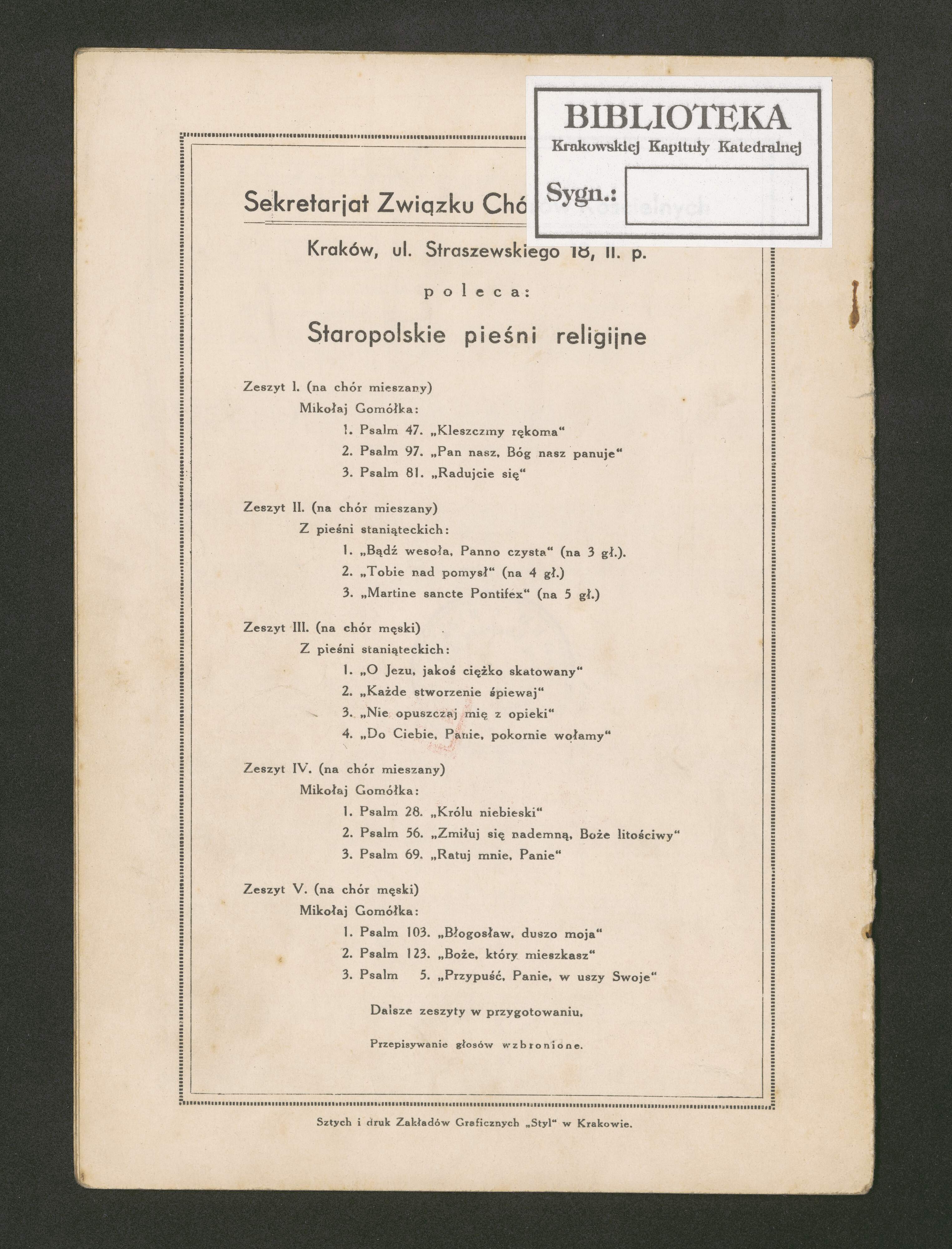 WYDAWNICTWO ZWIĄZKU CHÓRÓW KOŚCIELNYCH ARCHID. KRAK.