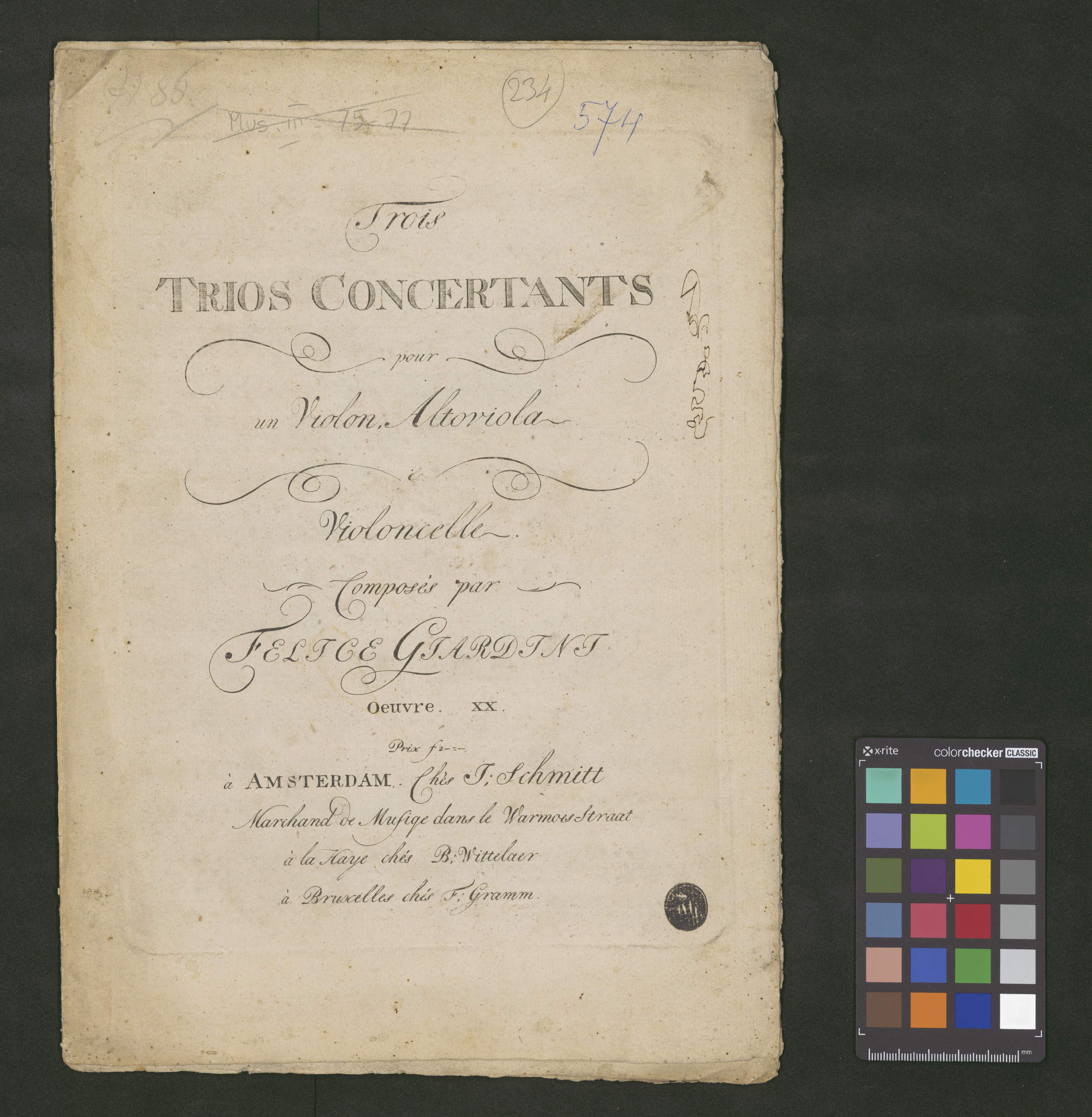 Trois trios concertants [B, F, C] pour un violon, altoviola & violoncello ... œuvre XX. [Amsterdam, Joseph Schmitt]