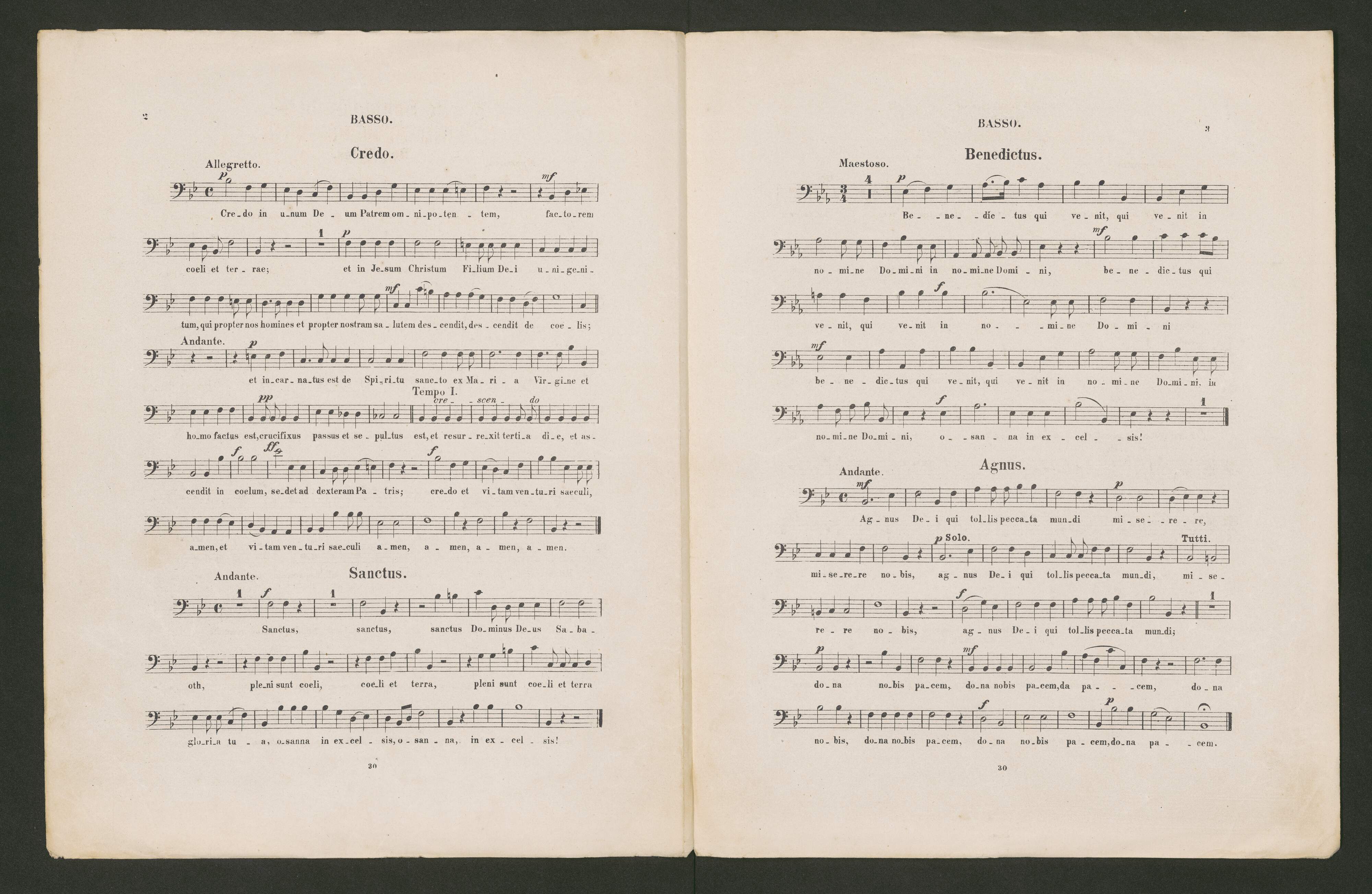[cover page:] 6 | Sonntags-Messen. | [...] N|o| 2. MESSE IN B. | Op. 11. Für drei oder vier Singstimmen. zwei Violinen, Violon u. Orgel | obligat, zewi Clarinetten, zwei Horn, zwei Trompeten u. Pauken ad libitum. [...] | kurz und leicht componirt | von | FRANZ SCHÖPF, | Vorstand des Süd-Tyroler Cäcilien-Vereins. | [...] | NEUE AUFLAGE. | Verlags Eighthum | der Kunst- und Musikalienhandlung JOHANN GROSS in INNSBRUCK. | (S. A. Reiss.) | [...] | Lith. Aust. v. F. W. Garbrecht Leipzig