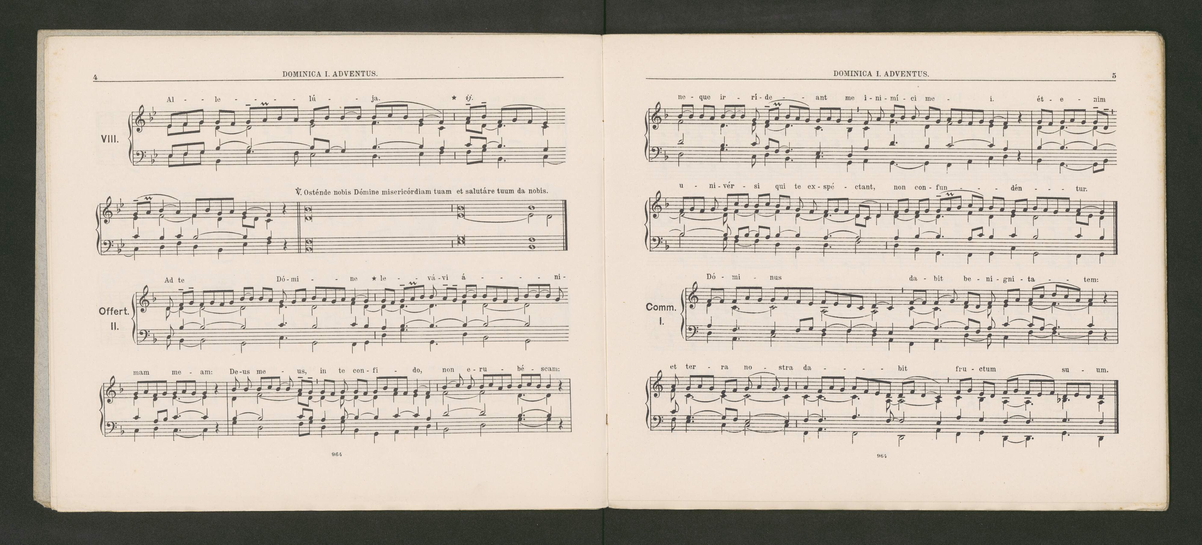 [page title:] MISSAE PRO DOMINICIS | ADVENTUS ET QUADRAGESIMAE | ORGANUM COMITANS | (Appendix ad Ed. Schwann N2) | Orgelbegleitung | zu den Messen an den Sonntagen während der | Advents = und Fastenzeit | (Anhang zu Editio Schwann N2) | bearbeitet von | August Wiltberger und Karl Wiltberger | Königl. Musikdirektor, Seminarlehrer in Brühl Gesanglehrer am Collegium Albertinum u. Leoninum in Bonn | Stich, Druck und Verlag von L. Schwann in Düsseldorf