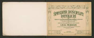 The 1 Volume of the Church Songbook, 320 songs, [pl-text: śpiewnik poprzedzony wstępem na stronie III, zapisanym w języku polskim. Zgodnie z treścią wstępu, pieśni zawarte w tomie przeznaczone są na kilka możliwych wersji obsadowych: 1 głos lub 4 głosy mieszane z akompaniamentem (organy, harmonium lub fortepian) bądź bez akompaniamentu], [pl-text: na odwrocie II strony: okrągła pieczęć: „ARCHIWUM I BIBLIOTEKA * Krakowskiej Kapituły Katedralnej”]