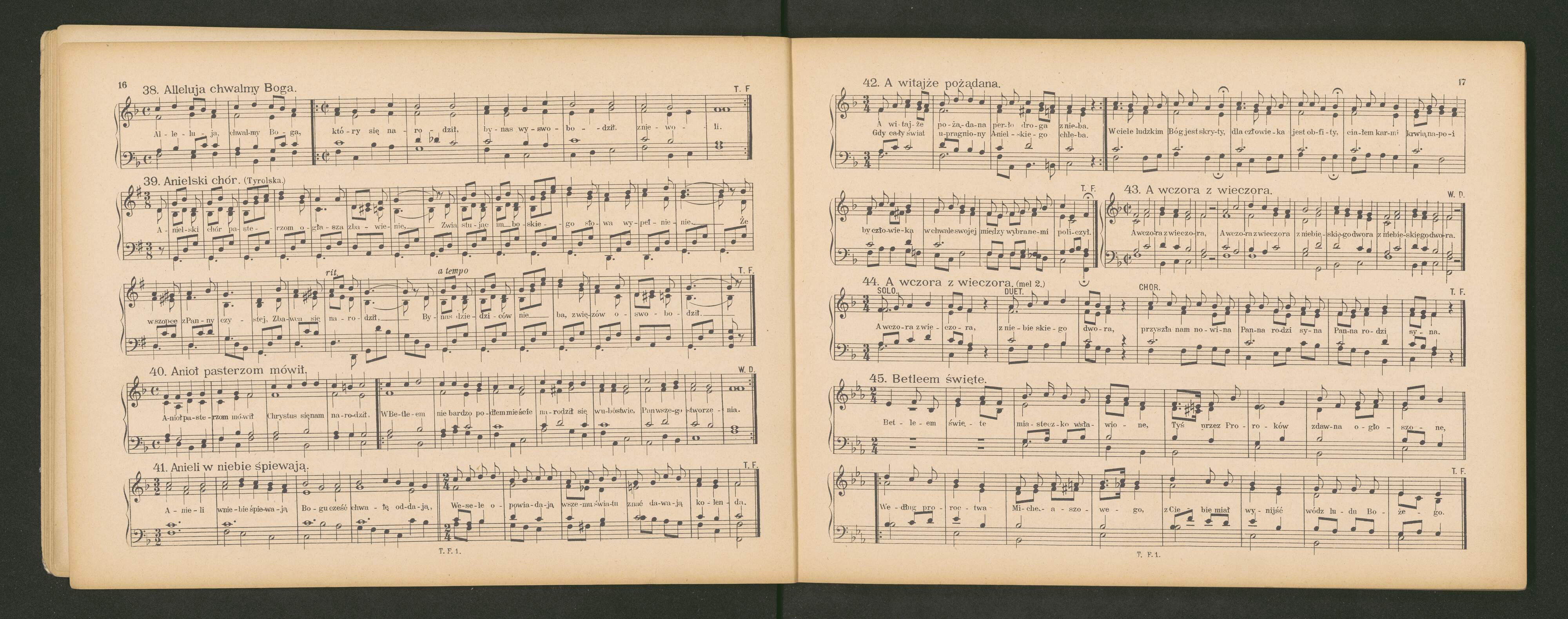 [cover and page title:] ŚPIEWNIK KOŚCIELNY KATOLICKI | czyli | NAJWIĘKSZY PODRĘCZNIK DLA ORGANISTÓW w KOŚCIOŁACH KATOLICKICH | zebrany staraniem Towarzystwa wzaj. pomocy | organistów diecezyi Krakowskiej | UŁOŻONY NA 1 GŁOS ORGANEM LUB NA 4 GŁOSY MIESZANE | CZĘŚĆ PIERWSZA | zawierająca pieśni adwentowe, KOLĘDY, pieśni Postne, WIELKANOCNE | i o Wniebowstąpieniu PAŃSKIM. | Wydanie trzecie. | KRAKÓW | Nakład i własność TOMASZA FLASZY