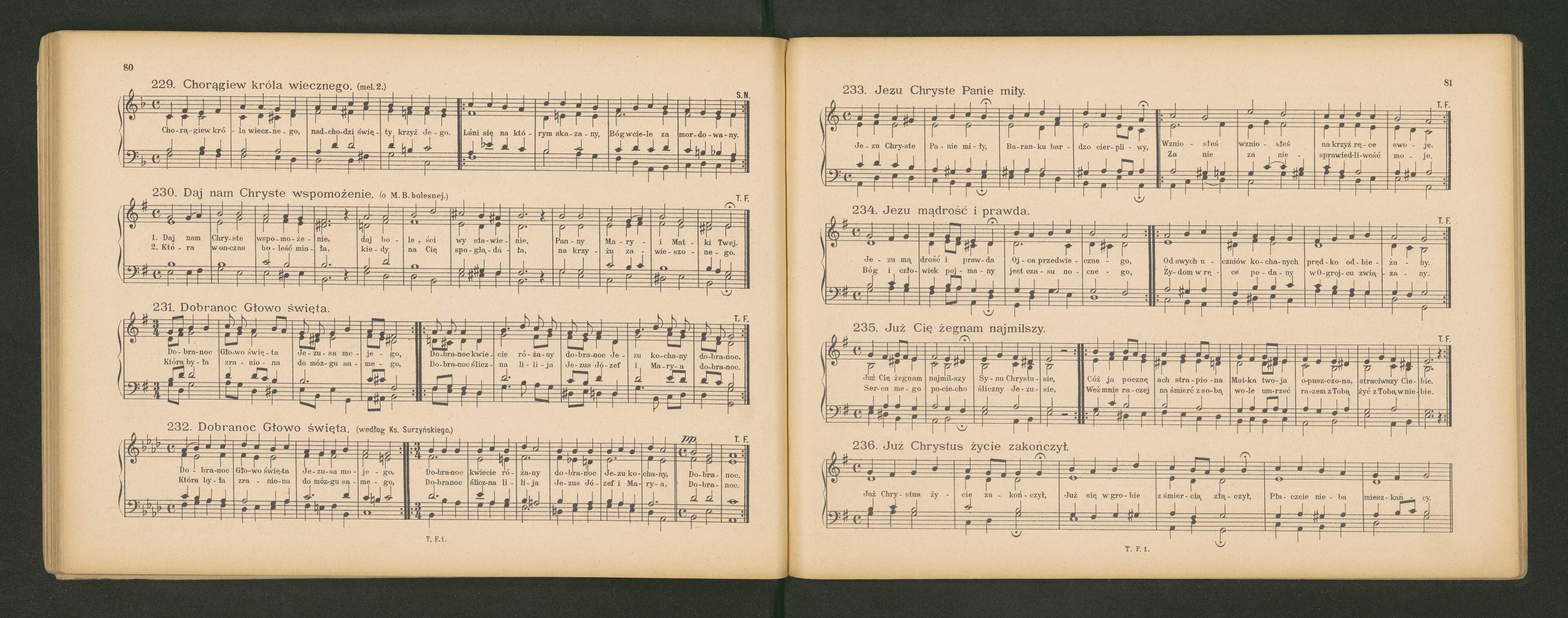 [cover and page title:] ŚPIEWNIK KOŚCIELNY KATOLICKI | czyli | NAJWIĘKSZY PODRĘCZNIK DLA ORGANISTÓW w KOŚCIOŁACH KATOLICKICH | zebrany staraniem Towarzystwa wzaj. pomocy | organistów diecezyi Krakowskiej | UŁOŻONY NA 1 GŁOS ORGANEM LUB NA 4 GŁOSY MIESZANE | CZĘŚĆ PIERWSZA | zawierająca pieśni adwentowe, KOLĘDY, pieśni Postne, WIELKANOCNE | i o Wniebowstąpieniu PAŃSKIM. | Wydanie trzecie. | KRAKÓW | Nakład i własność TOMASZA FLASZY