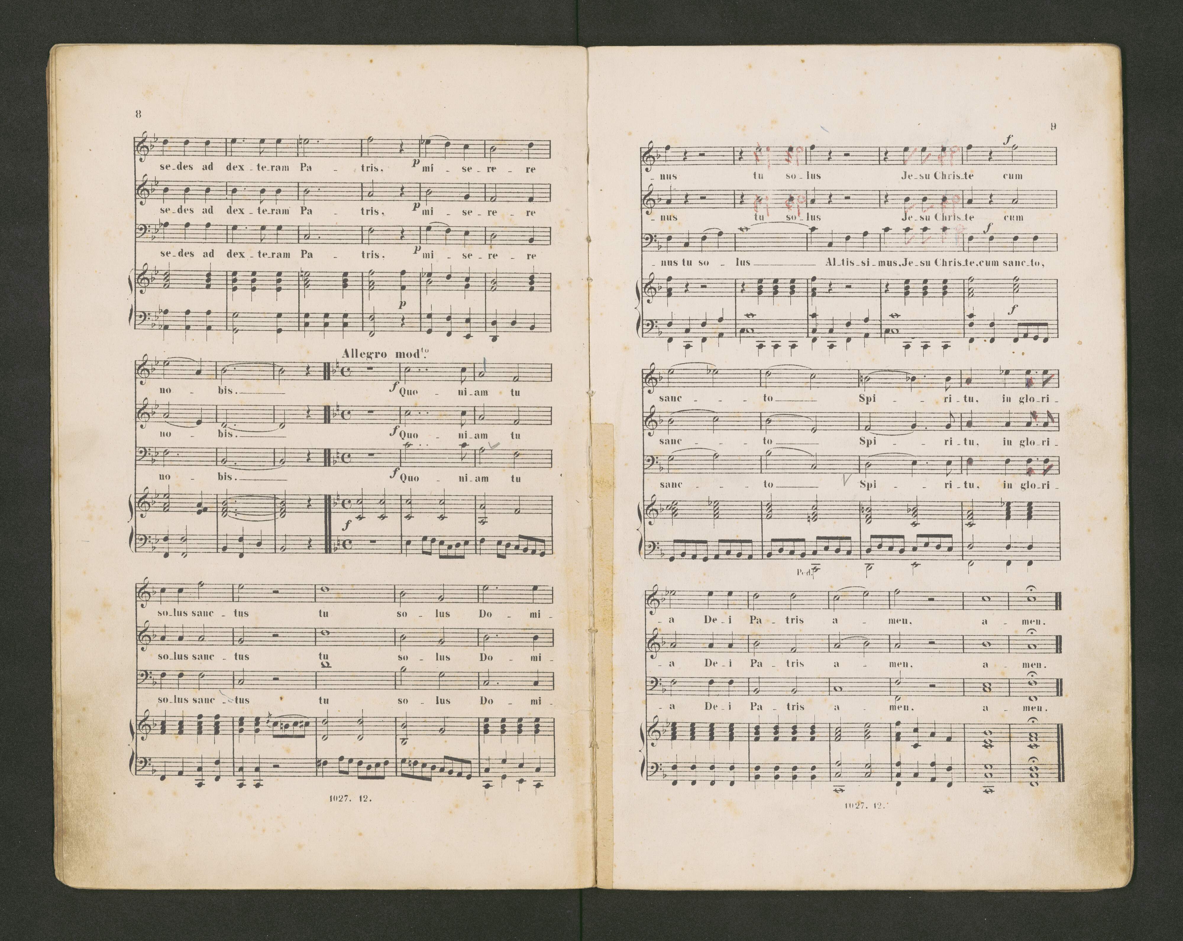 [title on the cover:] Répertoire des Maitrises. | Collection populaire de musiquw religieuse | a une ou plusieurs voix | Avec Accompagnement d'Orgue | En partitions et parties de chant | N|os| 27/28 | Célèbre | Messse en Fa | à | 3 voix d'homme | J. M. D'ARCHAMBEAU. | La partition [...] | LIÉGE, (BELGIQUE) | VEUVR LÉOPOLD MURAILLE EDITEUR. | 9 RUE EDOUARD WACKEN | Propriété pour tous pays. | Tous droita d'exécution publique, de reproduction | et d'arrangements réservés