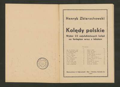 23 Christmas carols, [pl-text: Na II, III s. okł. pieczęć okrągła: "ARCHIWUM i BIBLIOTEKA | Krakowskiej Kapituły Katedralnej".], [pl-text: Na s. 13 owalna pieczęć: „CATH. CRAC. * ARCH. CAPIT.”]