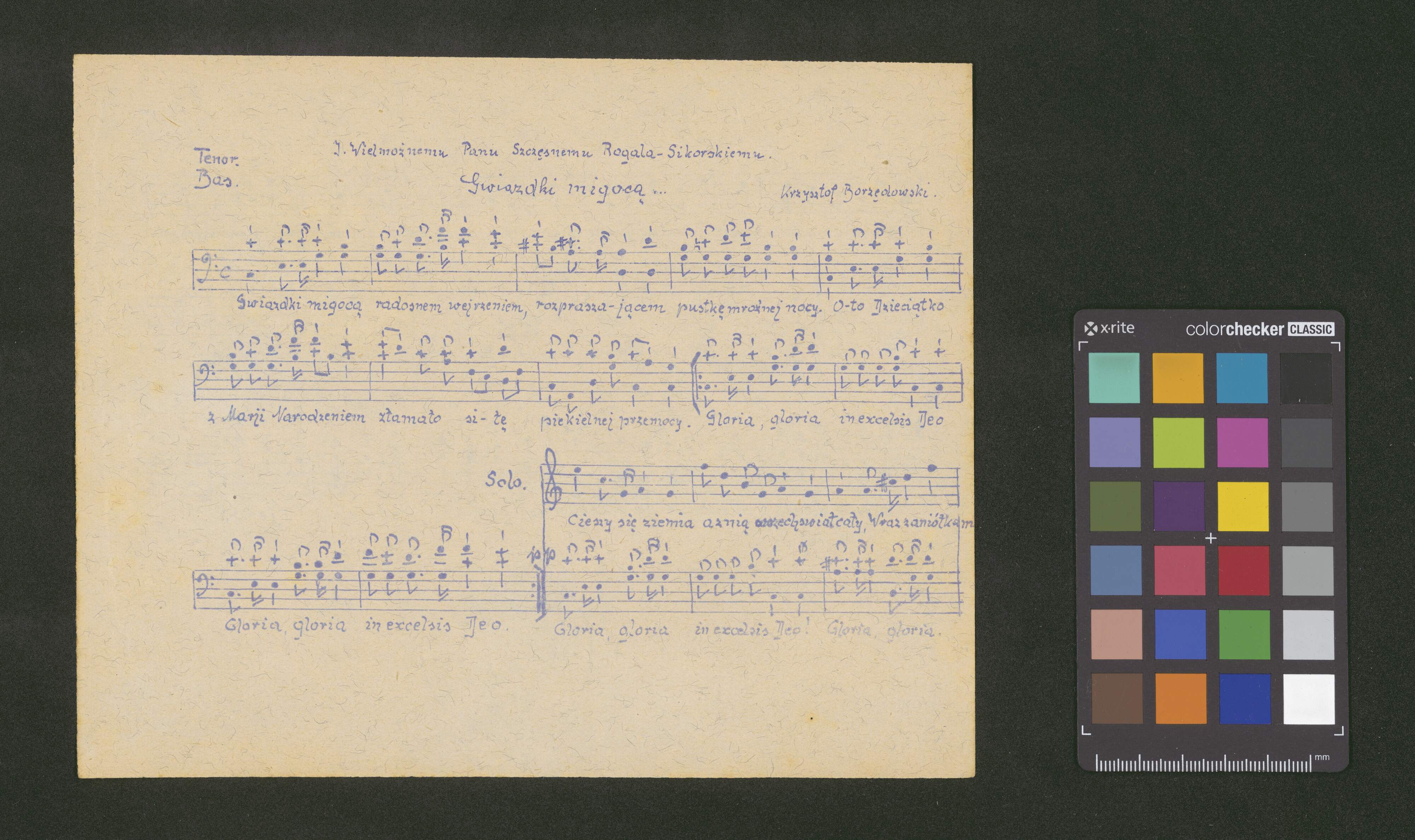 [caption title:] J. Wielmożnemu Panu Szczęsnemu Rogala-Sikorskiemu | Gwiazdki migocą... | [right:] Krzysztof Borzędowski