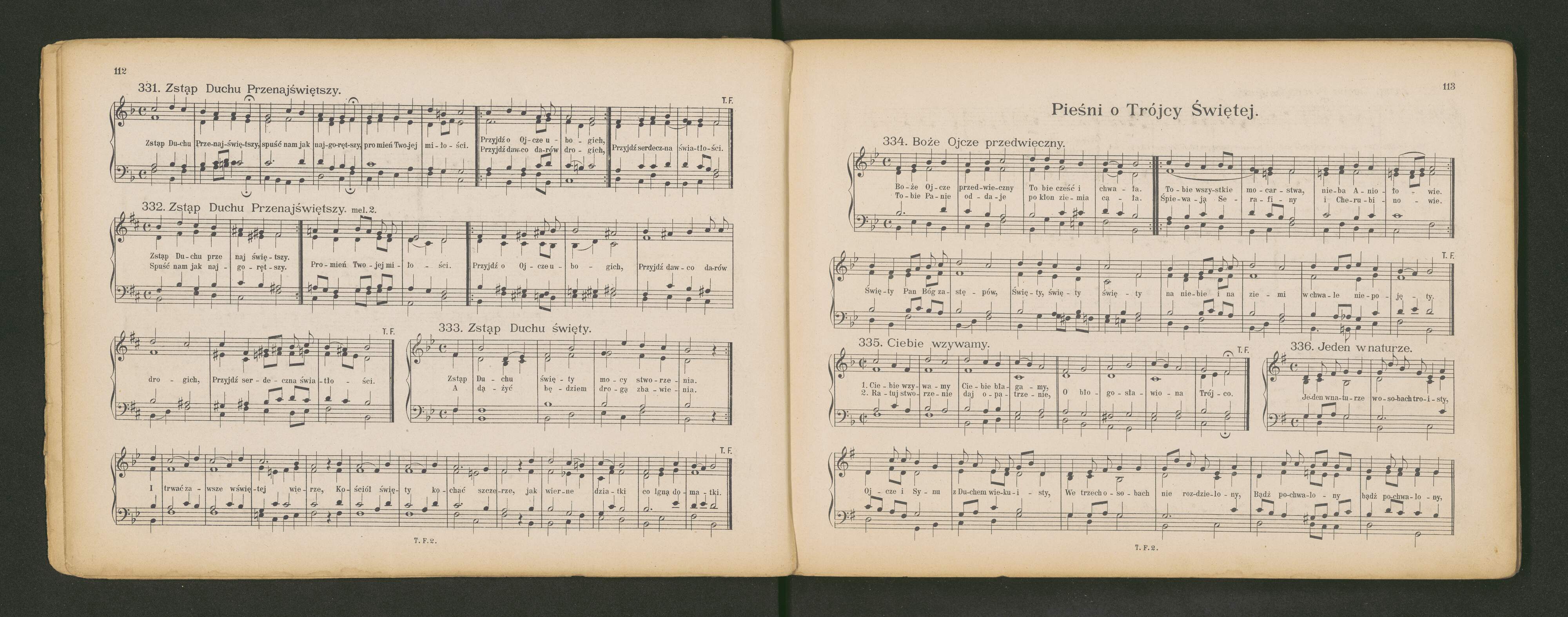 [cover and page title:] ŚPIEWNIK KOŚCIELNY KATOLICKI | czyli | NAJWIĘKSZY PODRĘCZNIK DLA ORGANISTÓW w KOŚCIOŁACH KATOLICKICH | zebrany staraniem Towarzystwa wzaj. pomocy | organistów diecezyi Krakowskiej | UŁOŻONY NA 1 GŁOS ORGANEM LUB NA 4 GŁOSY MIESZANE | CZĘŚĆ DRUGA | zawierający pieśni: DO DUCHA ŚWIĘTEGO, DO TRÓJCY ŚW., NA BOŻE CIAŁO, HYMNI SACRI | SUPLIKACYE, pieśni do P. JEZUSA. DO SERCA P. JEZUSA. DO M. BOSKIEJ. | GODZINKI, LITANIE, RÓŻANIEC I KORONKI. | Cena | Wydanie trzecie poprawione. | KRAKÓW | Nakład i własność TOMASZA FLASZY | Główny skład w księgarni | ANTONIEGO PIWARSKIEGO I SKI