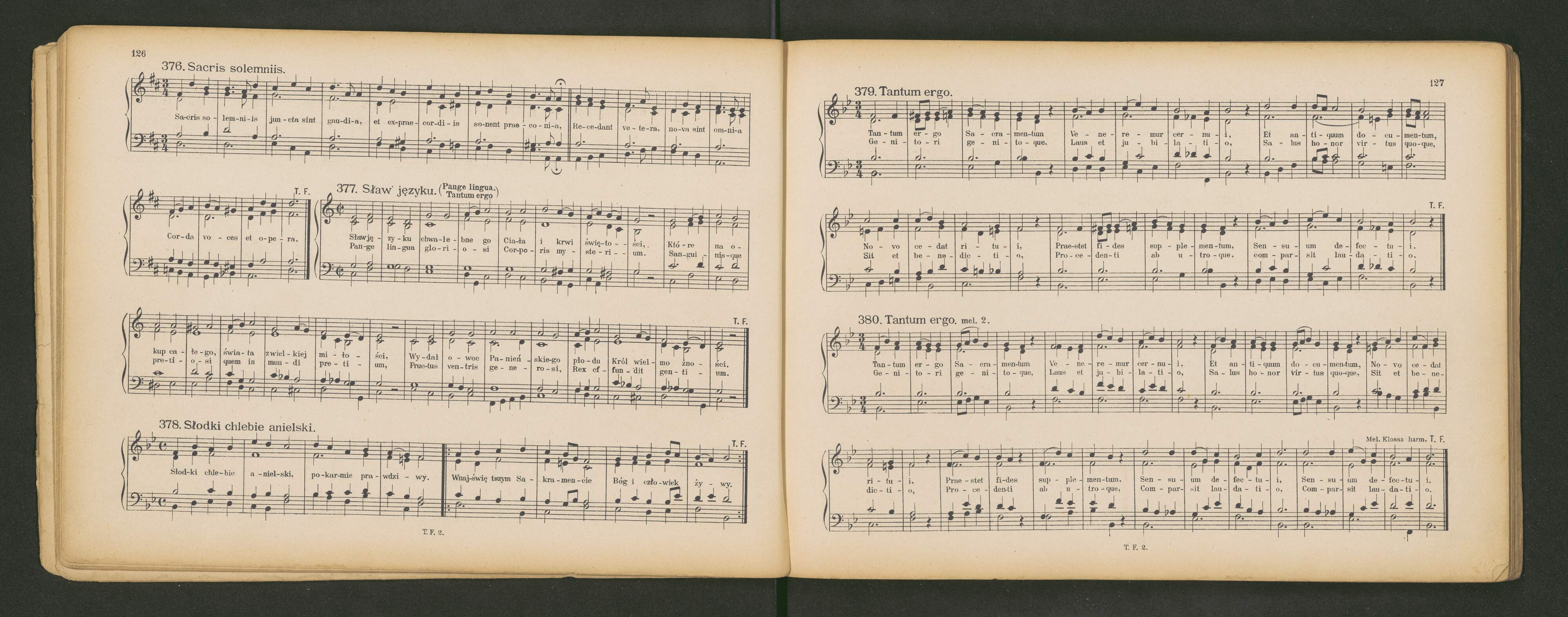 [cover and page title:] ŚPIEWNIK KOŚCIELNY KATOLICKI | czyli | NAJWIĘKSZY PODRĘCZNIK DLA ORGANISTÓW w KOŚCIOŁACH KATOLICKICH | zebrany staraniem Towarzystwa wzaj. pomocy | organistów diecezyi Krakowskiej | UŁOŻONY NA 1 GŁOS ORGANEM LUB NA 4 GŁOSY MIESZANE | CZĘŚĆ DRUGA | zawierający pieśni: DO DUCHA ŚWIĘTEGO, DO TRÓJCY ŚW., NA BOŻE CIAŁO, HYMNI SACRI | SUPLIKACYE, pieśni do P. JEZUSA. DO SERCA P. JEZUSA. DO M. BOSKIEJ. | GODZINKI, LITANIE, RÓŻANIEC I KORONKI. | Cena | Wydanie trzecie poprawione. | KRAKÓW | Nakład i własność TOMASZA FLASZY | Główny skład w księgarni | ANTONIEGO PIWARSKIEGO I SKI