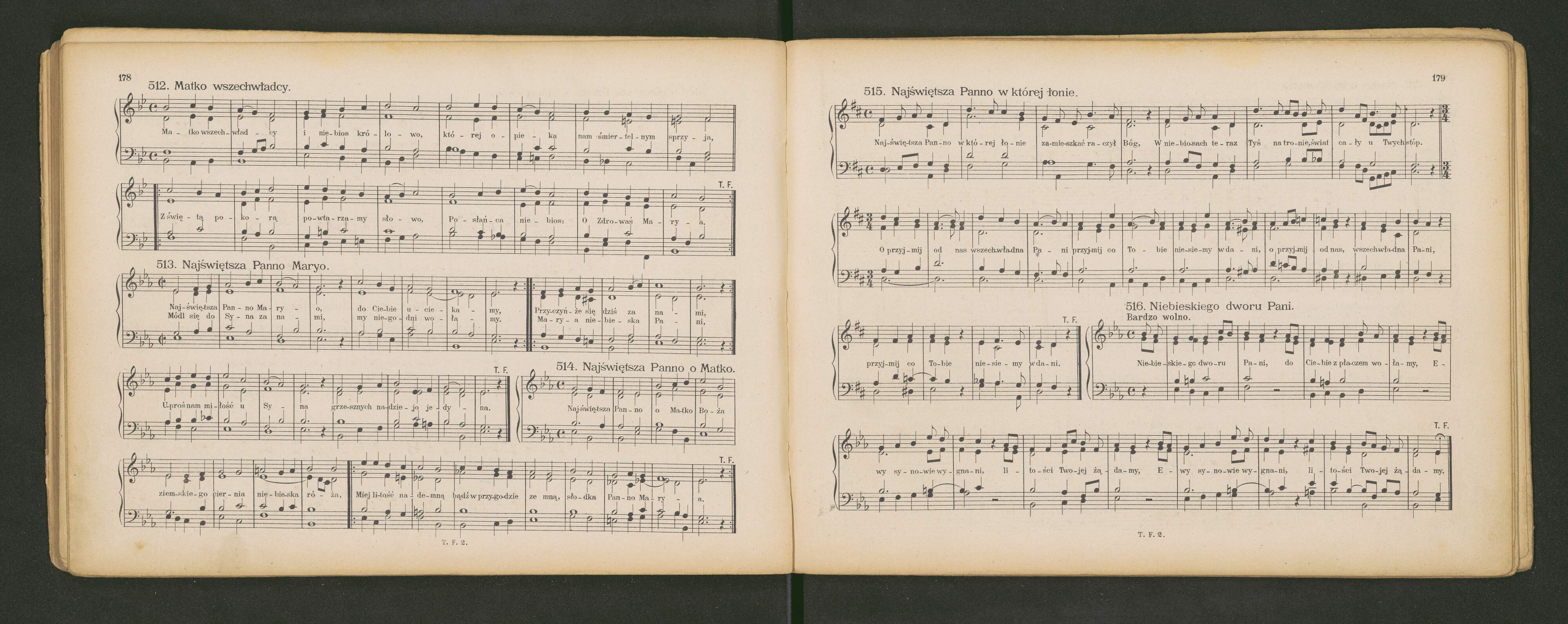 [cover and page title:] ŚPIEWNIK KOŚCIELNY KATOLICKI | czyli | NAJWIĘKSZY PODRĘCZNIK DLA ORGANISTÓW w KOŚCIOŁACH KATOLICKICH | zebrany staraniem Towarzystwa wzaj. pomocy | organistów diecezyi Krakowskiej | UŁOŻONY NA 1 GŁOS ORGANEM LUB NA 4 GŁOSY MIESZANE | CZĘŚĆ DRUGA | zawierający pieśni: DO DUCHA ŚWIĘTEGO, DO TRÓJCY ŚW., NA BOŻE CIAŁO, HYMNI SACRI | SUPLIKACYE, pieśni do P. JEZUSA. DO SERCA P. JEZUSA. DO M. BOSKIEJ. | GODZINKI, LITANIE, RÓŻANIEC I KORONKI. | Cena | Wydanie trzecie poprawione. | KRAKÓW | Nakład i własność TOMASZA FLASZY | Główny skład w księgarni | ANTONIEGO PIWARSKIEGO I SKI