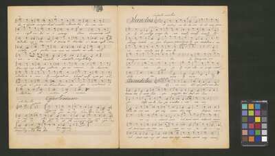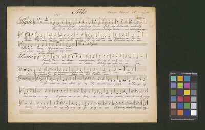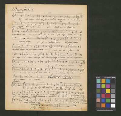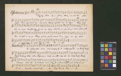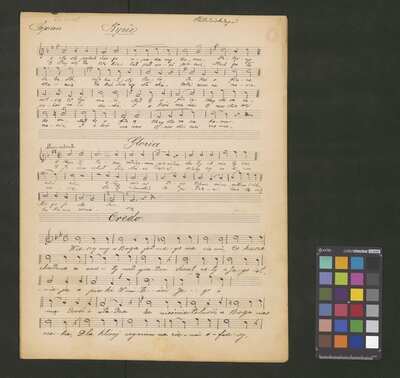 [pl-text: Druk obłożony czerwoną okładką, wyciętą z innego druku. Grzbiet wzmacniany.], [pl-text: Na pierwszej stronie znajduje się katalog edycji; niebieskim ołówkiem zakreślony numer zawartości druku (No.27), obok dopisana tym samym ołówkiem cyfra "80". W prawym dolnym rogu pierwszej strony owalna niebieska pieczęć: "A. PIWARSKI I S-ka | KSIĘGARNIA MUZYCZNA | i WYPOŻYCZALNIA NUT | Kraków św. Jana 3." naniesiona na inną pieczęć o tej samej treści. W górnym brzegu strony niebieska pieczęć (nieco zamazana): "Cena kop. 80". W lewym górnym rogu dwie stare sygnatury naniesione ołówkiem: "Mus.III-336-337 | + Mus.I-481 vs.".], [pl-text:Pieczęć: „ARCHIWUM I BIBLIOTEKA”, „Krakowskiej Kapituły Katedralnej” wraz z wpisaną ołówkiem sygnaturą na str. 2. Pieczęć: „CATH. CRAC. * ARCH. CAPIT.” na str. 3.], [pl-text: Do druku dołączone dodatkowe kopie utworów zawartych w publikacji, spisane ręcznie. I zestaw: "K.Studzińskiego" (Msza): S (2f., niebieskim ołówkiem na f.1r dopisane "Solo"), S (2f.), A (2f.), T (2f.), B (2f.). Na pierwszej stronie każdej karty naniesiona ołówkiem sygnatura oraz pieczęć: „CATH. CRAC. * ARCH. CAPIT.”, karty spisane prawdopodobnie przez dwóch kopistów. II zestaw: "Ojcze nasz! Karola Studzińskiego": S (1f.), A (1f.), T (1f.), B (1f.). Karty spisane przez kolejnego kopistę (w tym wypadku cały zestaw przez jednego kopistę)Na pierwszej stornie kart naniesiona ołówkiem sygnatura oraz pieczęć: „CATH. CRAC. * ARCH. CAPIT.”. Zestaw III: "Offertorium Studziński K." org+V (2f.), spisane przez innego kopistę; na kartach widoczny znak drukarski "J.E. & C|o| | Protokoll. Schutzmarke | N|o| 12". Na pierwszej stronie naniesiona ołówkiem sygnatura oraz pieczęć: „CATH. CRAC. * ARCH. CAPIT.”. Zestaw IV: "Komp. Karol Studziński" (Msza+ "Błogosław Boże"): S (3f.), A (3f.), T (3f.; "Agnus Dei" w tym głosie spisane ołówkiem na f.3r), B (3f.); na f. 1r ww wszystkich głosach widoczne tłoczona pieczęć: "KASPER MOLĘCKI * W KRAKOWIE *" z wpisaną w polu atramentem datą "1871"; na f. 1r wpisane ołówkiem sygnatury, pieczęć: „CATH. CRAC. * ARCH. CAPIT.” na f. 1r, 2r we wszystkich głosach. Zestaw spisany inna ręką niż pozostałe zestawy. Foliacja na wszystkich kartach spisanych ręcznie naniesiona ołówkiem.]
