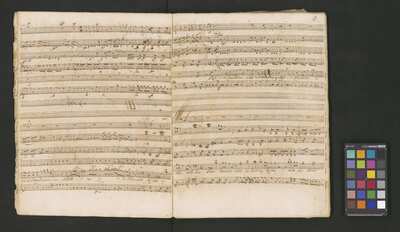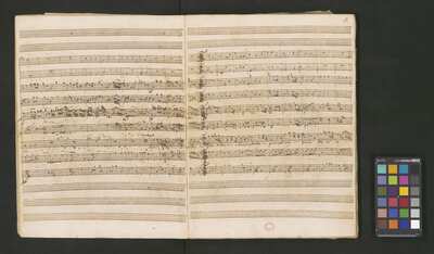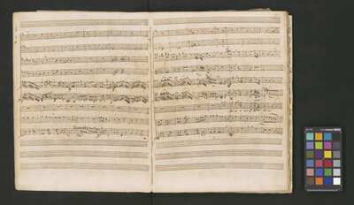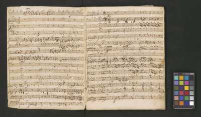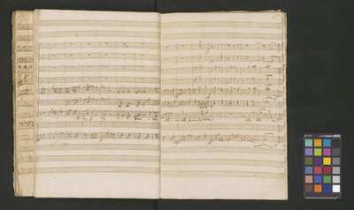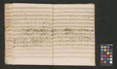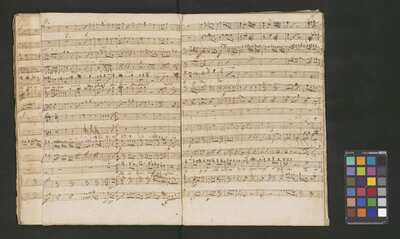 Score in two parts, [pl-text: część pierwsza: f. 1-36r, część druga: 36v-78v], [pl-text: na obwolucie adnotacja ołówkiem: "N358"], [pl-text: w rękopisie obecne pieczęci: „ARCHIWUM I BIBLIOTEKA * Krakowskiej Kapituły Katedralnej”,„CATH. CRAC. * ARCH. CAPIT.” oraz trzecia, trudna do zidentyfikowania pieczęć], [pl-text: f. 1v: adnotacja "O[pus] ad D[ei] G[loriam] et S[anctissimae] V[irginis] C[eciliae] Die 10 Maji A.D. 1786"], [pl-text: f. 78v: adnotacja "Sit Laus Ssae J: B: B: et V. M. Ceciliae. F. M. Lang"]