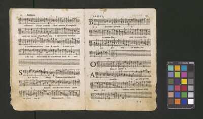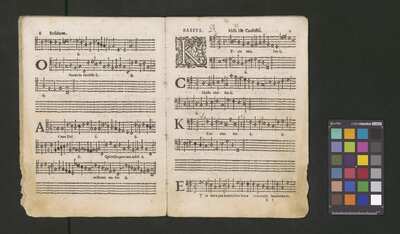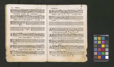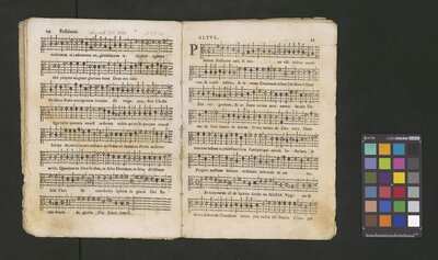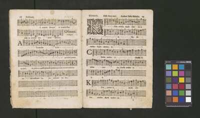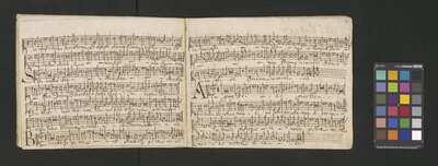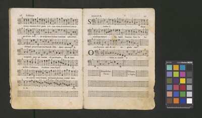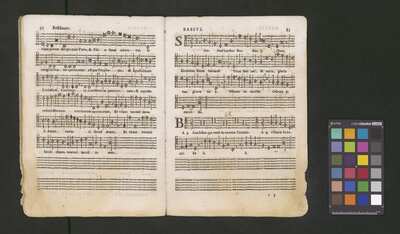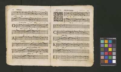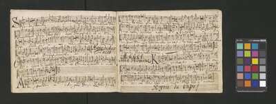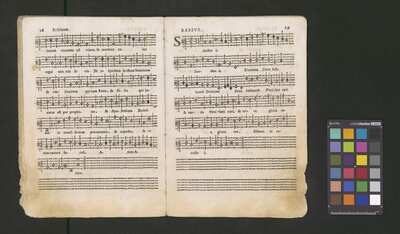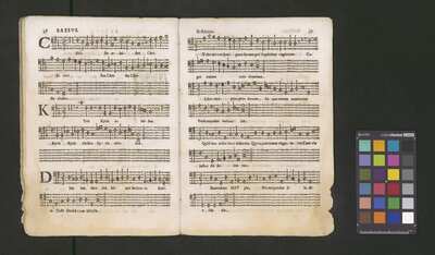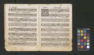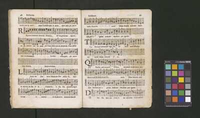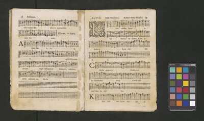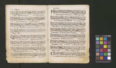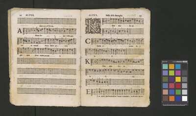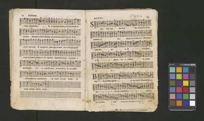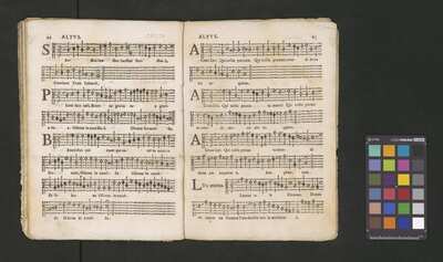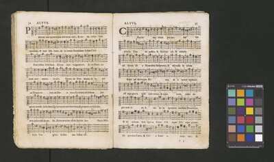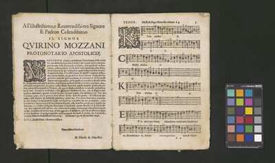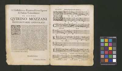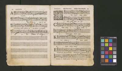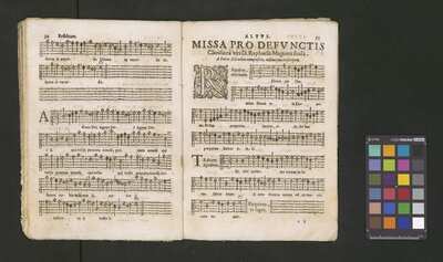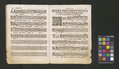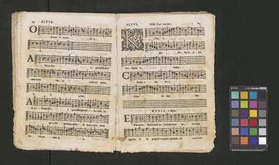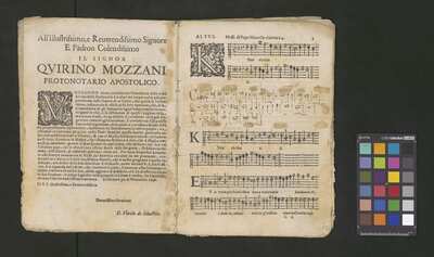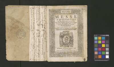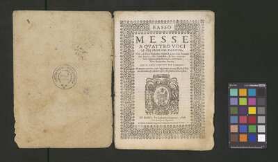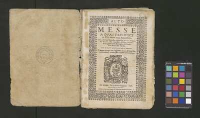 Contains: C. F. Anerio, P. Heredia, G. P. da Palestrina, --> 1662|1, Vermerk Santinis auf dem Titelblatt der Orgelstimme: "al Sig. Gaetano Gaspari.", Handschriftliche Ergänzungen und Korrekturen im Altus., Rundstempel: "KÖNIGL. UNIVERSITÄTS-BIBLIOTHEK | MÜNSTER | i/W.", Rechteckiger Stempel: "SANTINISCHE BIBLIOTHEK | Eigentum | des Bischöflichen Stuhles | MÜNSTER", Rechteckiger Stempel: "Santinische Bibliothek | Eigentum | des Bischöflichen Stuhles | Münster", [pl-text: Brak oryginalnych partii S oraz bc; partia Canto przepisana na kartach o wymiarach 16.5 x 21.5, ponumerowanych ołówkiem od 1 do 12.], [pl-text: Pieczęć okrągła o treści "ARCHIWUM I BIBLIOTEKA | Krakowskiej Kapituły Katedralnej | Kk.I. | 734" na drugiej stronie okładki ksiąg A, T oraz B.], [pl-text: Mała, czarna, owalna pieczęć o treści "CATH. CRAC. * ARCH. CAPIT." na 1r, 3r, 6r, 12v i na stronach recto karty tytułowej ksiąg A, T oraz B.], [pl-text: Na 12v zapisana ołówkiem sygnatura "Kk.I.734".], [pl-text: Na 1r zapisana ołówkiem sygnatura "Ch. 153/1-5".]