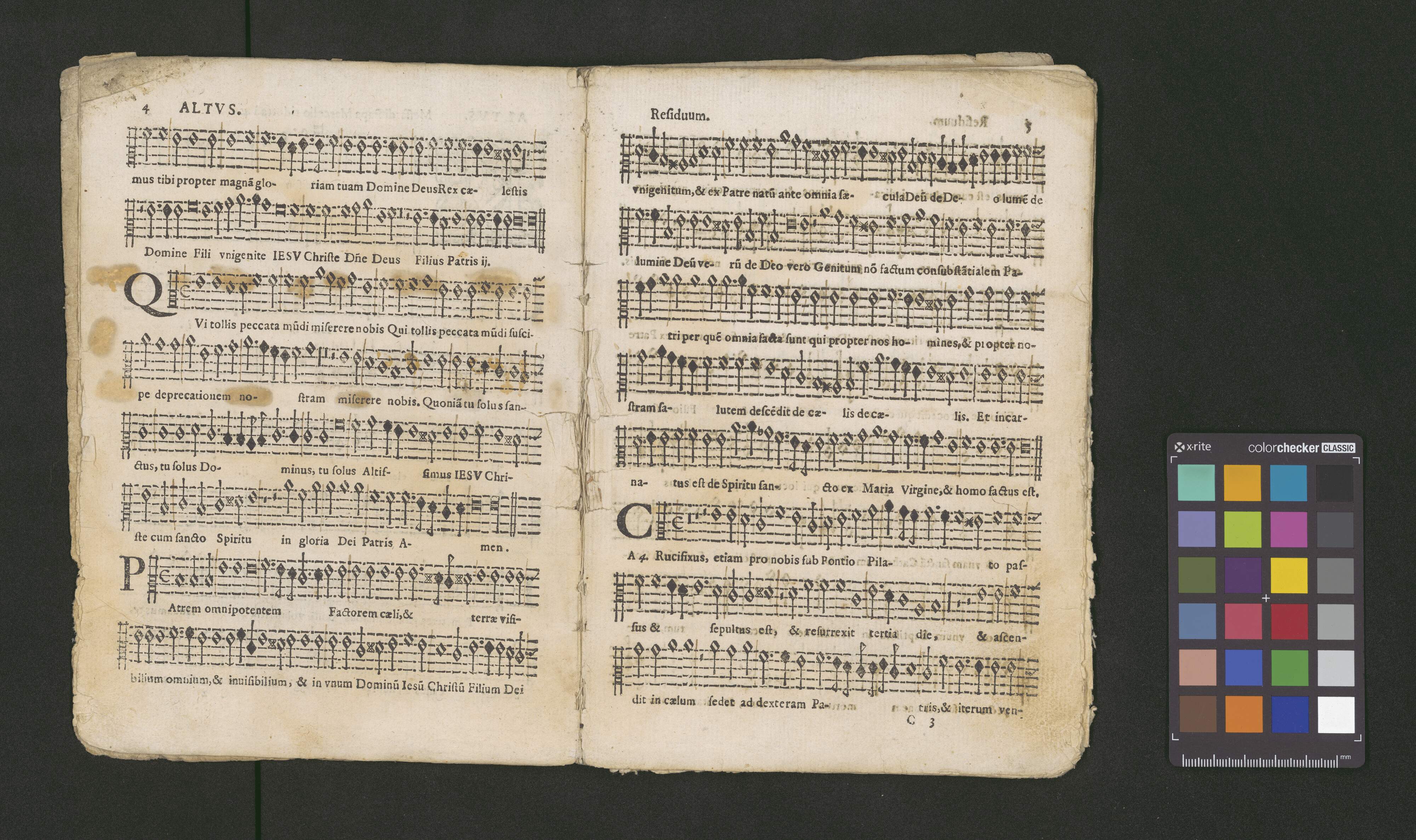 CANTO. | MESSE | A QVATTRO VOCI | LE TRE PRIME DE PALESTINA [!] | Cioè, di Papa Marcello ridotta à 4. da Gio. France- | sco Anerio, Iste Confessor, & Sine Nomine: | & la Quarta della Battaglia, dell'istesso | Gio. Francesco Anerio. | CON IL BASSO CONTINVO PER L'ORGANO. | Di nuouo corrette, con l'aggiunta di vna Meßa di Pie- | tro Heredia, et vn'altra per i Defonti del medesimo. | [printer's mark] | IN ROMA, Per Lodouico Grignani. 1646. | Con LicenZa de' Superiori. | Ad istanza di Antonio Poggioli all'Insegna del Martello in Parione