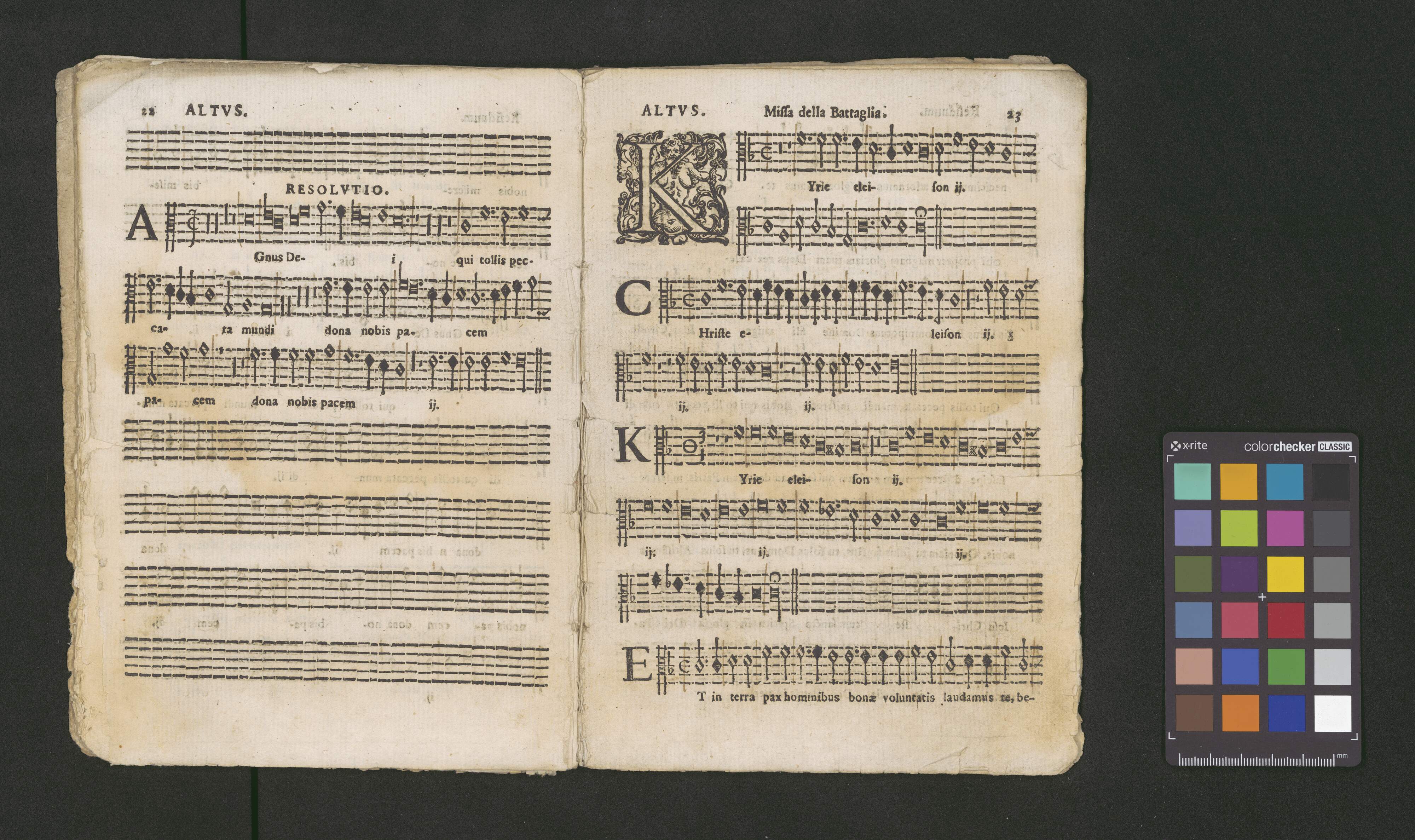 CANTO. | MESSE | A QVATTRO VOCI | LE TRE PRIME DE PALESTINA [!] | Cioè, di Papa Marcello ridotta à 4. da Gio. France- | sco Anerio, Iste Confessor, & Sine Nomine: | & la Quarta della Battaglia, dell'istesso | Gio. Francesco Anerio. | CON IL BASSO CONTINVO PER L'ORGANO. | Di nuouo corrette, con l'aggiunta di vna Meßa di Pie- | tro Heredia, et vn'altra per i Defonti del medesimo. | [printer's mark] | IN ROMA, Per Lodouico Grignani. 1646. | Con LicenZa de' Superiori. | Ad istanza di Antonio Poggioli all'Insegna del Martello in Parione