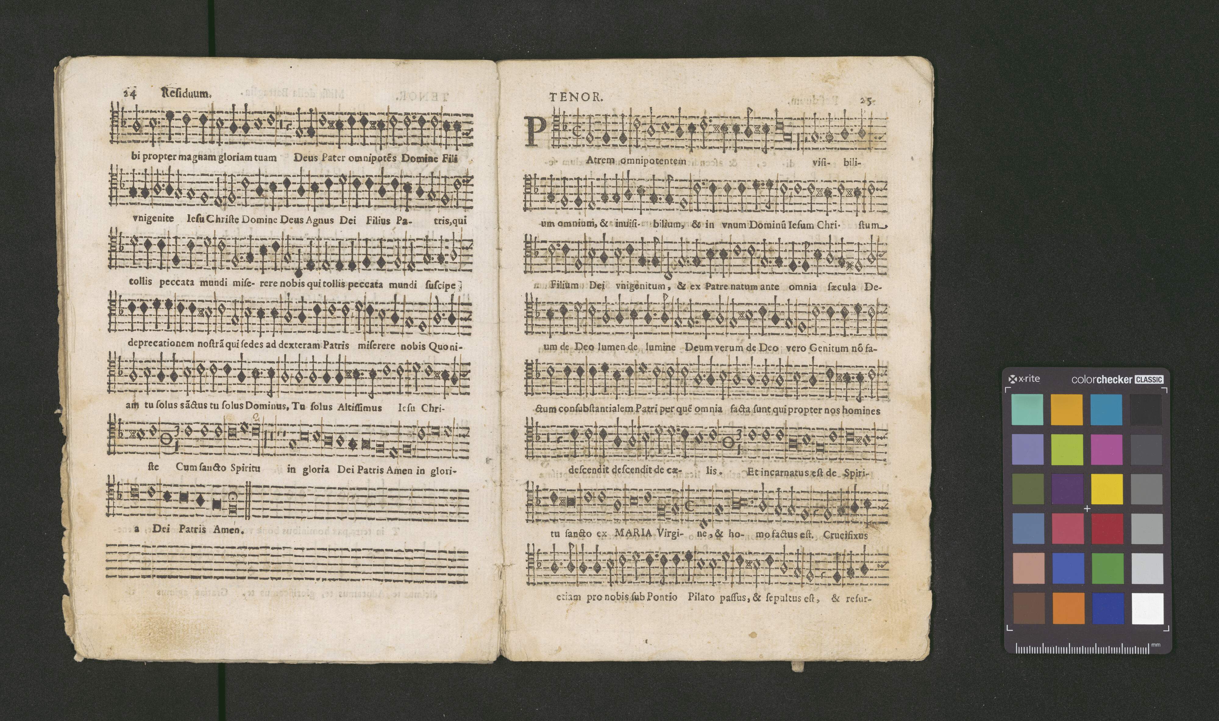CANTO. | MESSE | A QVATTRO VOCI | LE TRE PRIME DE PALESTINA [!] | Cioè, di Papa Marcello ridotta à 4. da Gio. France- | sco Anerio, Iste Confessor, & Sine Nomine: | & la Quarta della Battaglia, dell'istesso | Gio. Francesco Anerio. | CON IL BASSO CONTINVO PER L'ORGANO. | Di nuouo corrette, con l'aggiunta di vna Meßa di Pie- | tro Heredia, et vn'altra per i Defonti del medesimo. | [printer's mark] | IN ROMA, Per Lodouico Grignani. 1646. | Con LicenZa de' Superiori. | Ad istanza di Antonio Poggioli all'Insegna del Martello in Parione